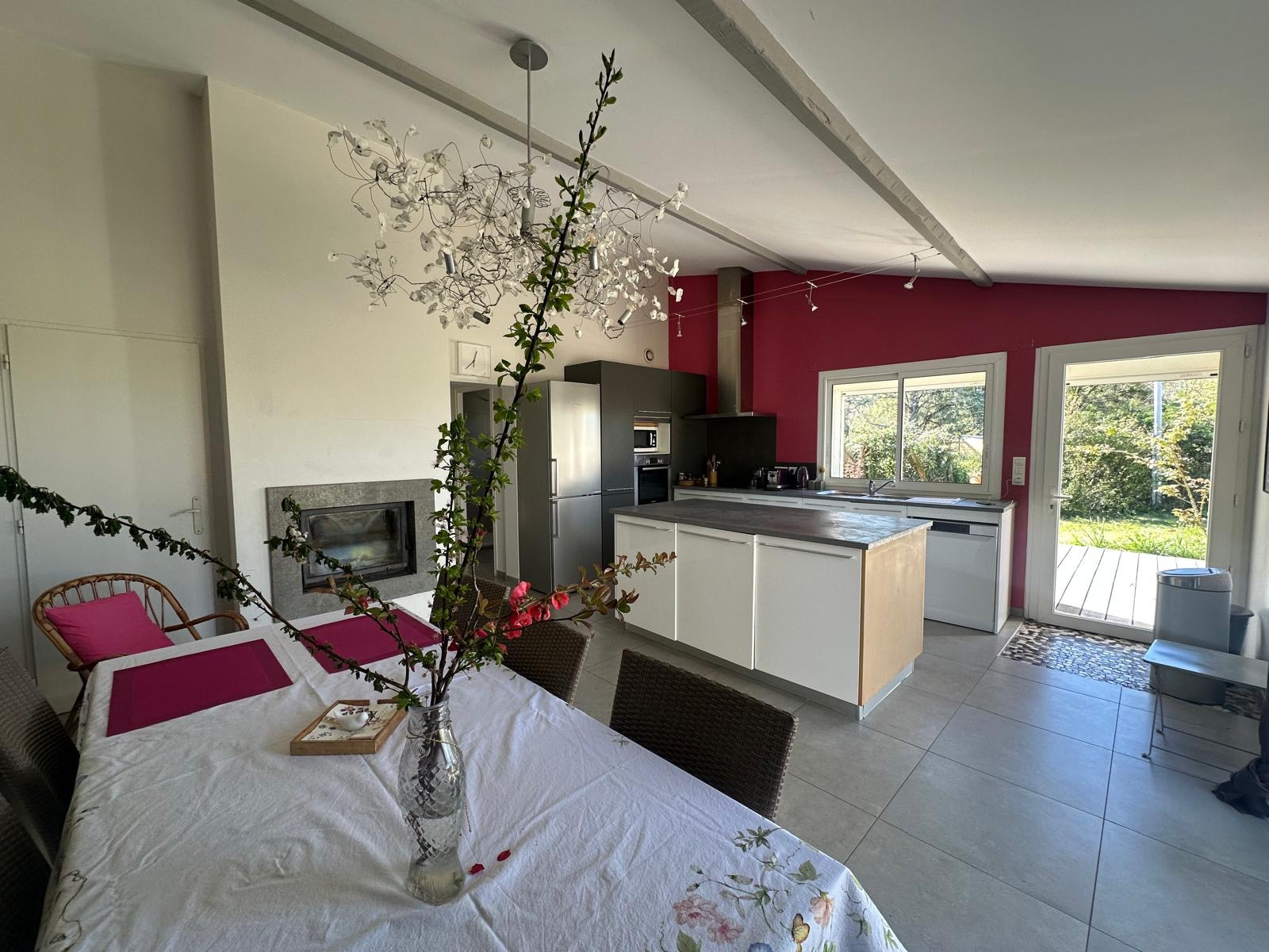 Un intérieur chaleureux et lumineux Découvrez un espace de vie traversant, baigné de lumière naturelle, avec un salon ouvrant sur sa terrasse en bois intime. La grande cuisine indépendante est un véritable cocon, spacieuse et fonctionnelle à la fois, où l'on peut s'y réchauffer avec son insert , s' ouvre également sur sa terrasse et le jardin arboré bucolique, invitant à des moments de convivialité en famille ou entre amis.