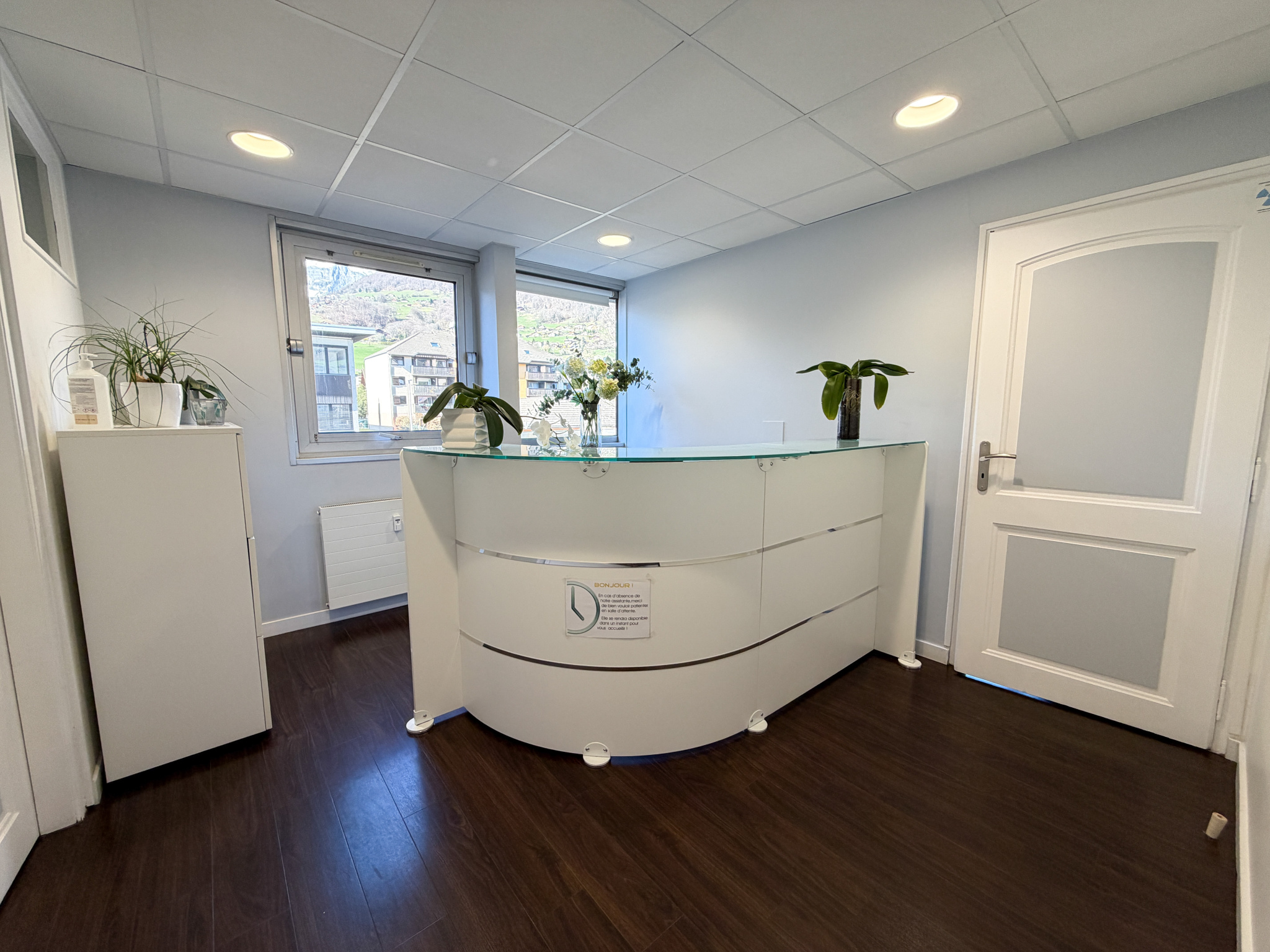 Situé au 1er étage, il est actuellement composé d'un accueil, 2 salles de soins, 3 bureaux, une salle d'attente, 2 wc séparés, et une salle d'eau.