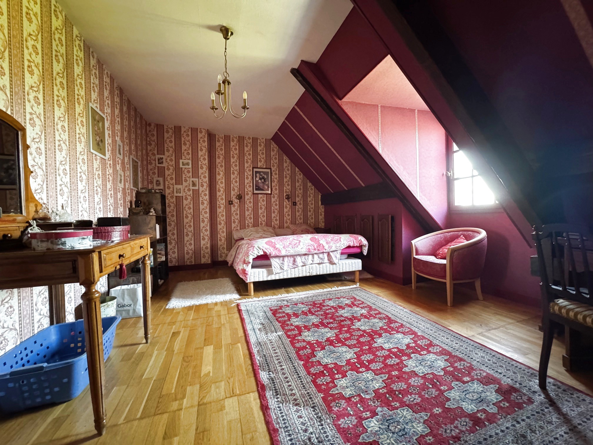 Au rez-de-chaussée, vous trouverez une entrée avec placards, un vaste séjour / salle à manger lumineux avec cheminée de 58 m2 , ouvert sur une cuisine équipée, créant un bel espace de vie convivial.