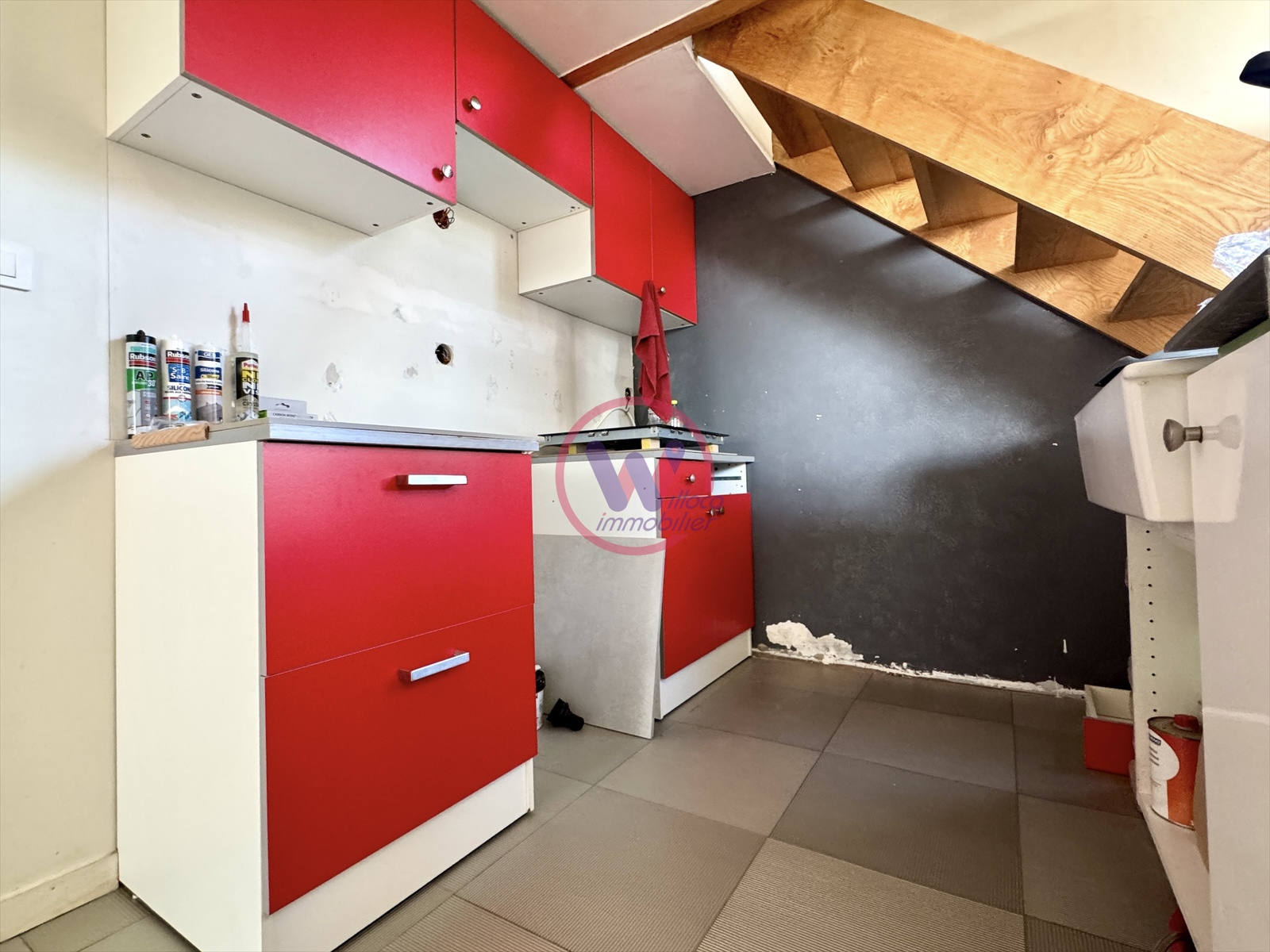 Garage. Chauffage individuel électrique au sol + radiateurs, poêle à bois.