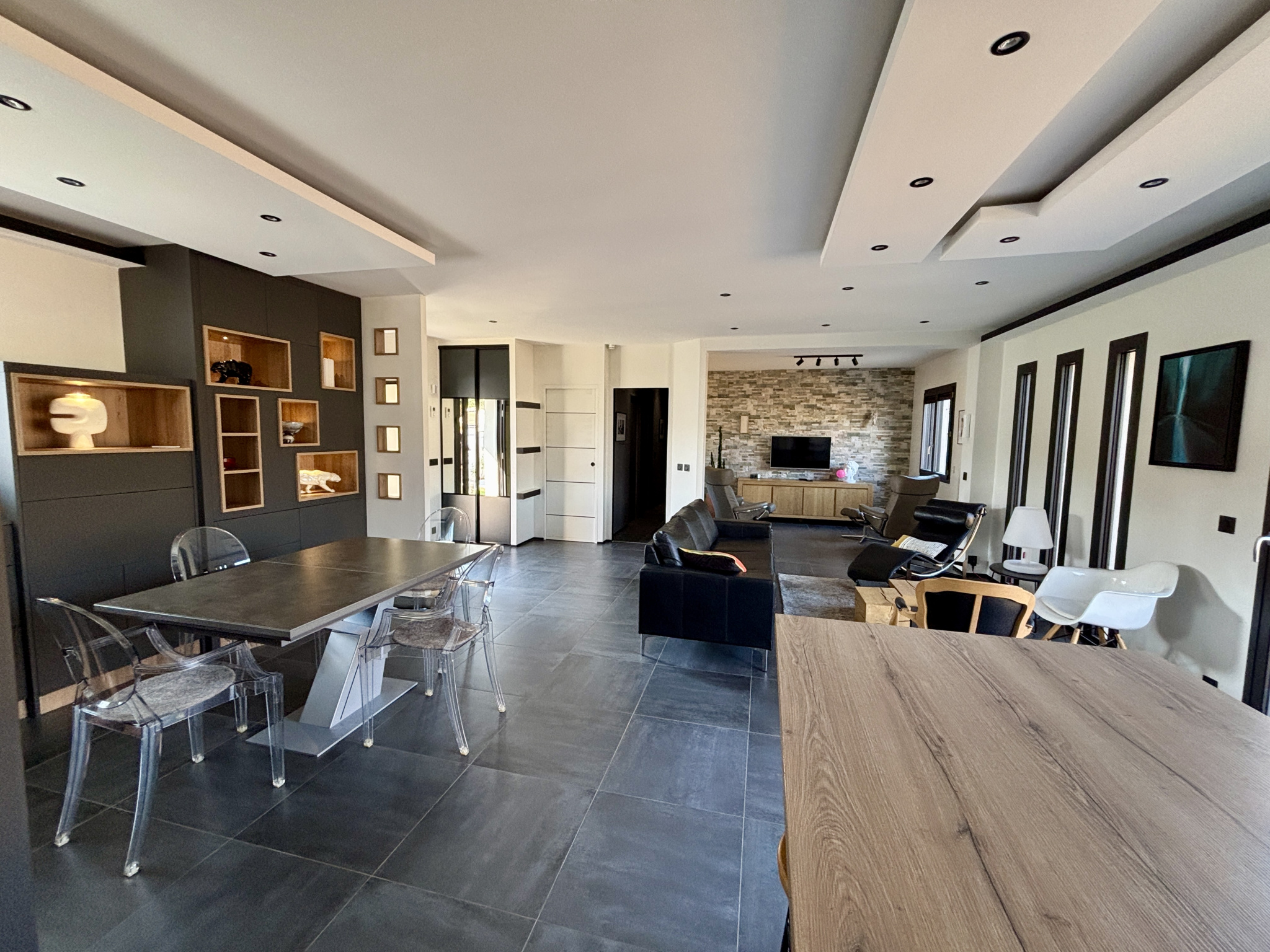 Pensée et sublimée par une architecte d'intérieur, cette propriété séduit dès l'entrée par ses volumes généreux et sa luminosité remarquable. Vous découvrirez une magnifique pièce de vie d'environ 63 m2, baignée de lumière, intégrant une cuisine sur-mesure haut de gamme, entièrement aménagée et équipée, aux finitions irréprochables.Cet espace offre également la possibilité d'aménager une troisième chambre, tout en conservant un séjour spacieux et confortable.