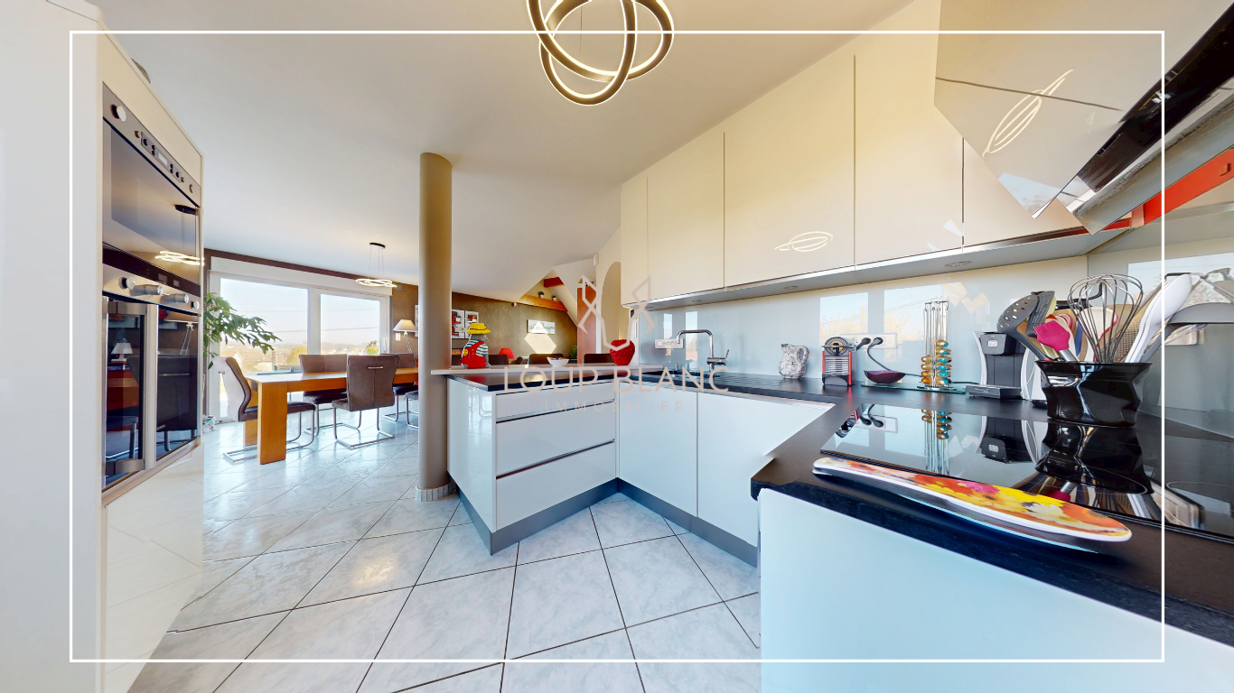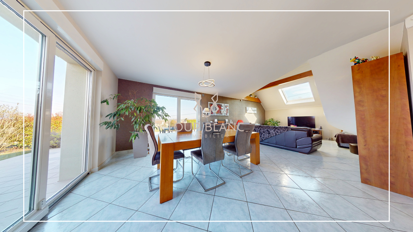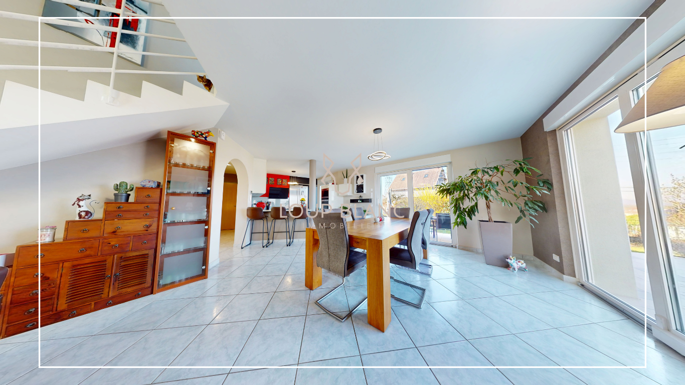 LOUP BLANC Immobilier Belfort, vous présente à la vente, sur les hauteurs d'Audincourt, une maison construite en 1994 par le constructeur Thourot, reconnu localement pour la qualité de ses constructions et de ses matériaux.