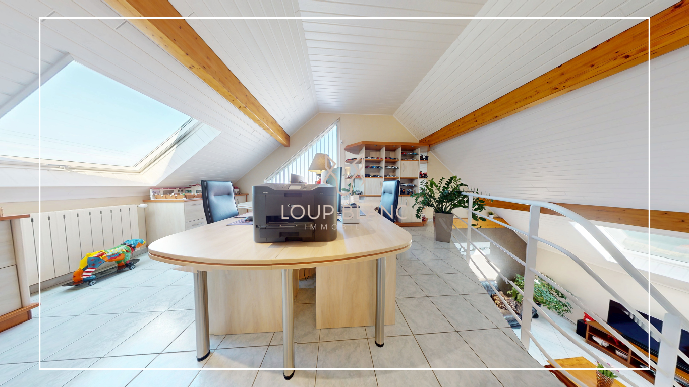 À l'étage, vous découvrirez une grande mezzanine de 21 m2 pouvant servir d'espace bureau ou détente, trois chambres ainsi qu'une seconde salle d'eau.