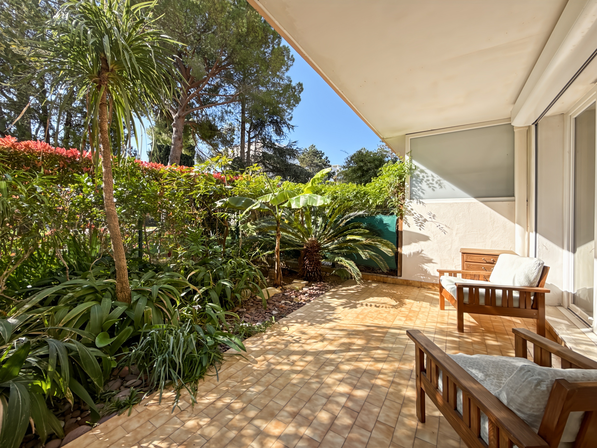 Lumineux et agréable, l'appartement s'ouvre sur une terrasse orilongée d'un jardin , parfait pour profiter du climat azuréen toute l'année