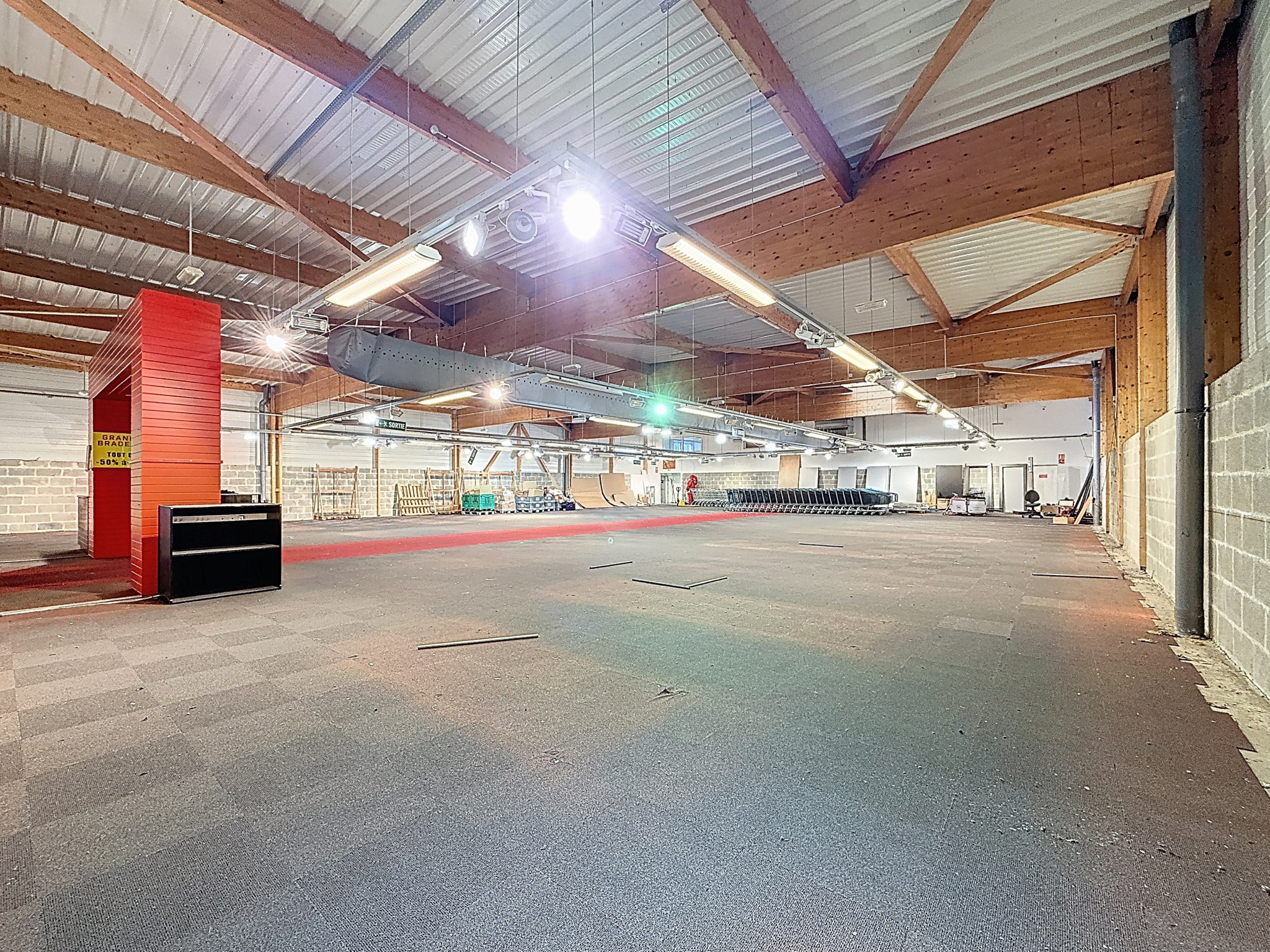 Édifié en 2005, cet ensemble développe 917 m2 de murs commerciaux, vendus libres de toute occupation. Dès l'arrivée, la surface de vente affirme la vocation du lieu : un volume généreux, facile à appréhender, qui se prête à des usages variés et à une organisation fluide des espaces. Le rez-de-chaussée accueille également un couloir desservant un bureau, des sanitaires hommes et femmes, ainsi qu'une grande réserve, pensée pour répondre aux besoins concrets d'exploitation. À l'étage, un grand bureau complète l'ensemble, accompagné d'une salle de pause spacieuse pour les salariés, apportant une dimension pratique et confortable au quotidien.