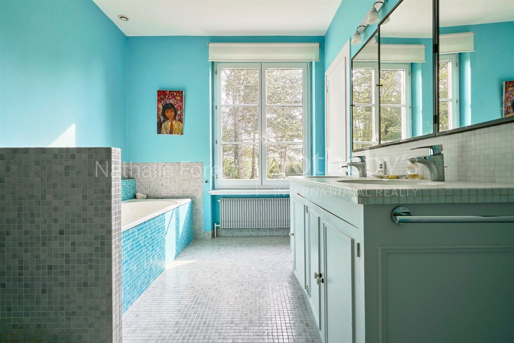 Le rez-de-chaussée accueille également une suite parentale de standing, offrant une vue apaisante sur le jardin, un dressing ainsi qu’une salle de bains complète avec baignoire et douche.