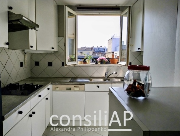De part son étage élevé et sa double exposition, l’appartement jouit d’une grande luminosité.