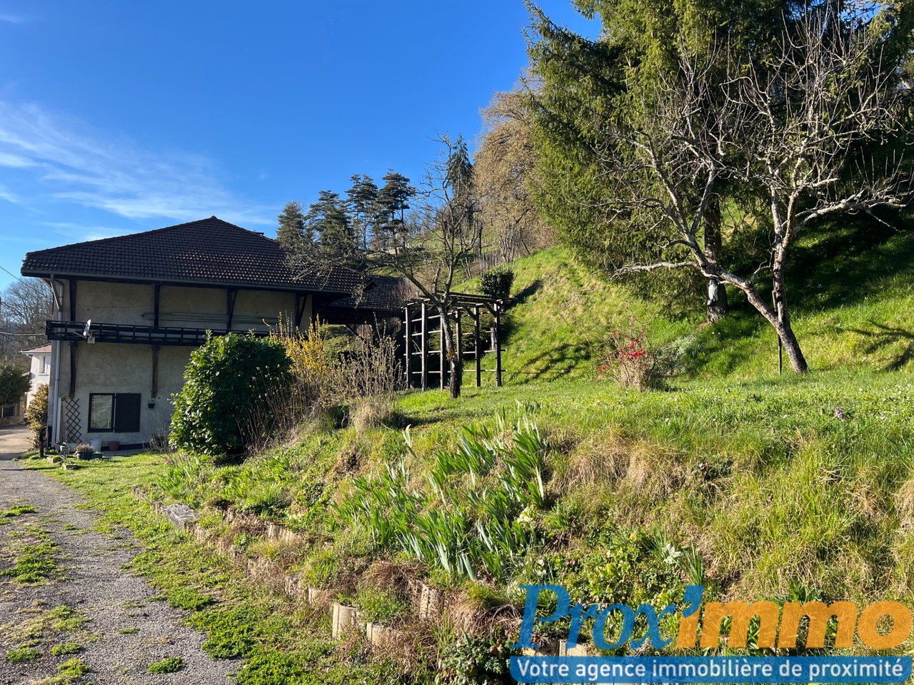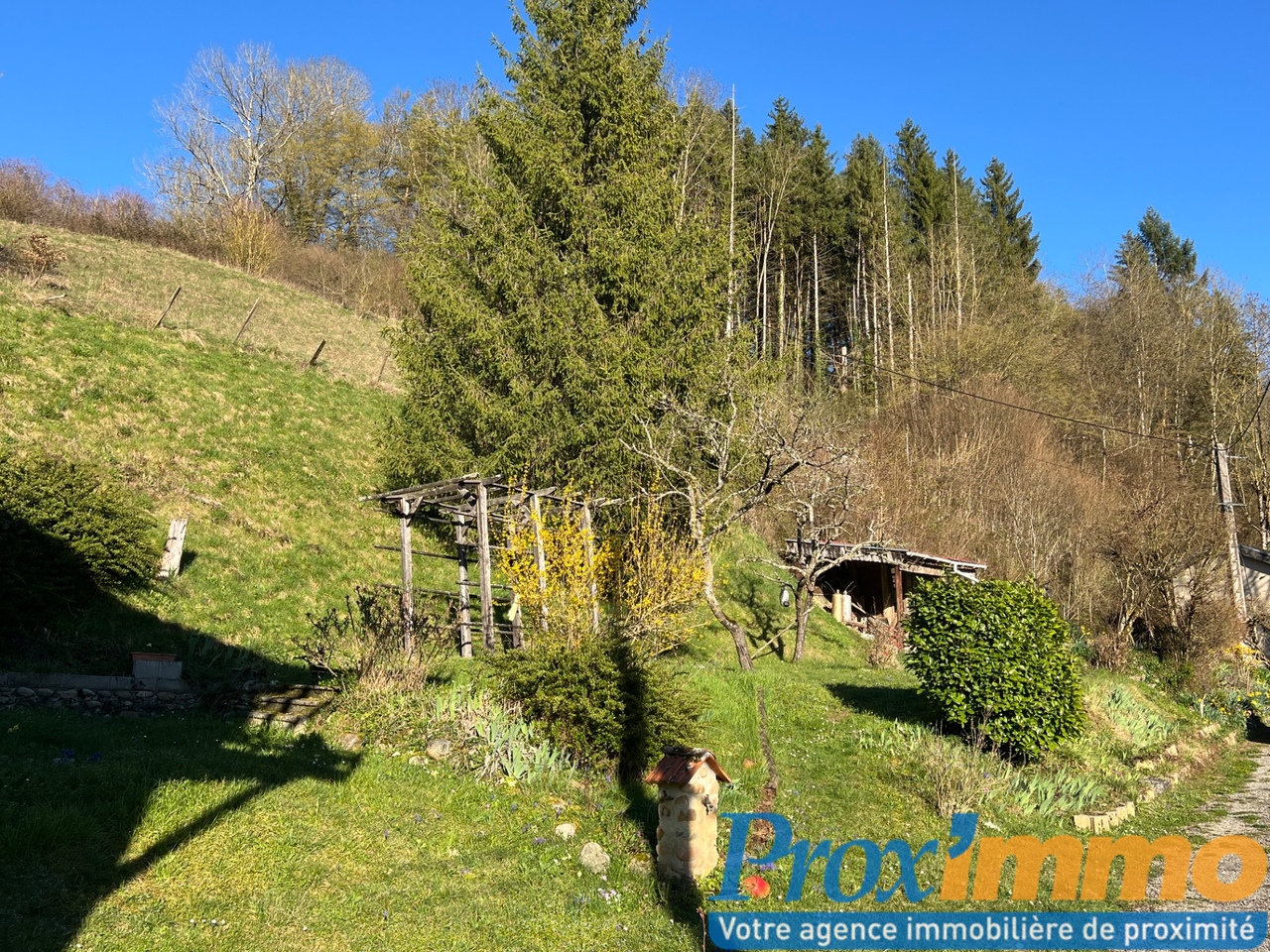 À l’extérieur, vous profiterez d’un jardin avec eau de source sur un terrain attenant de 1 103 m².