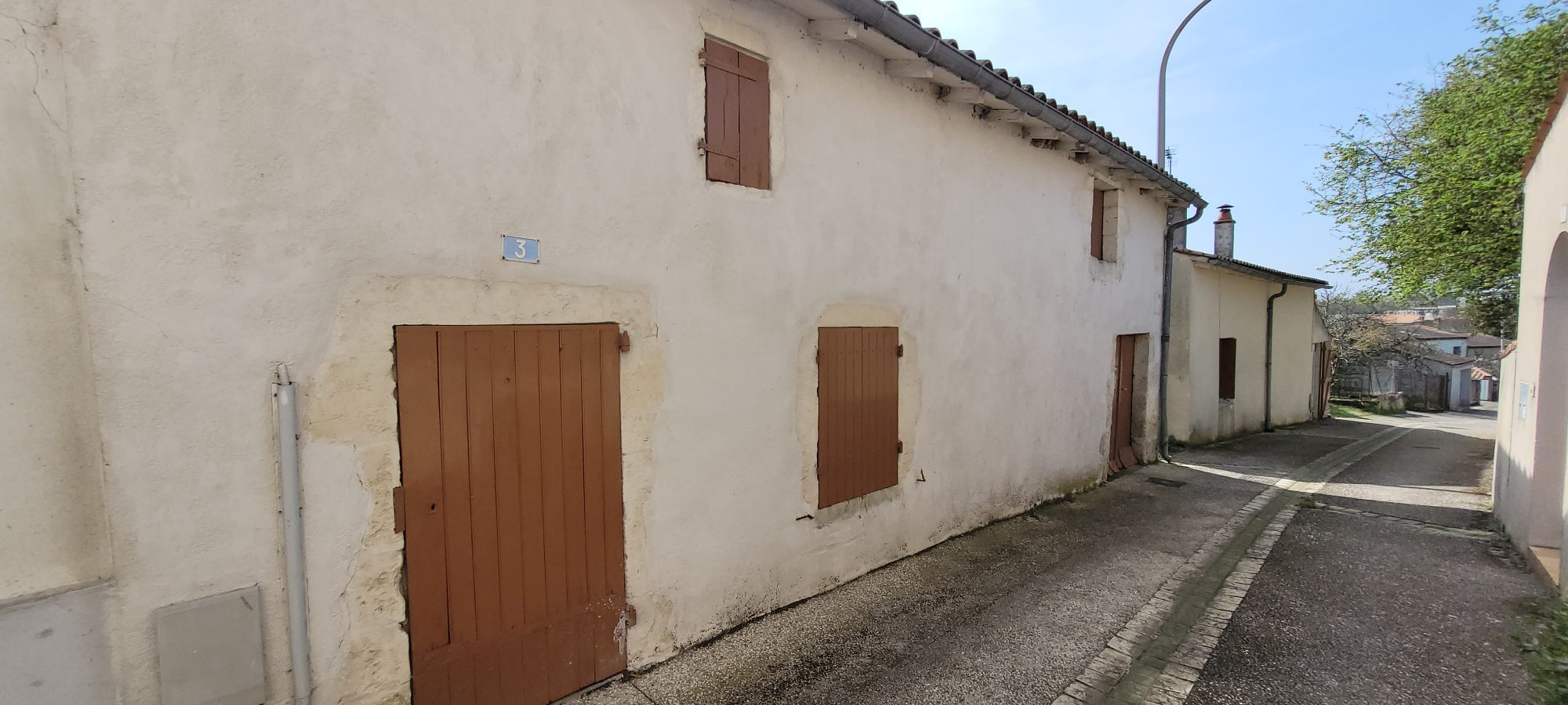 Petite maison à rénover en plein coeur du village, boulangerie à 2 mn à pied, épicerie, pharmacie, pôle médical, vétérinaire, collège etc... Une grande entrée, un séjour, cuisine, une chambre, véranda, wc, salle de bains. Un grenier, et un petit carré d'herbe. A côté, non attenant, un chai d'environ 45 m² au sol, avec un étage, et la possibilité de le rénover entièrement. Tout-à-l'égout.