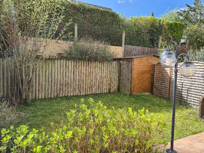 Elle offre un double séjour lumineux avec cheminée ouvert sur une terrasse et un jardin sans vis-à-vis avec abri.