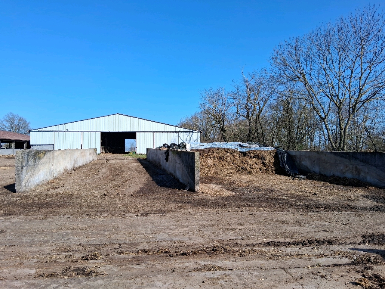 Elle comprend une villa des années 70 élevée entièrement sur sous - sol à réhabiliter, un bâtiment ancien servant d?atelier, une stabulation entravée d?une capacité de 100 bovins adultes à l?attache, une stabulation de 1990 avec couloir de raclage et aire paillée d?une surface de 1885 m² environ, un bâtiment d?engraissement de 2007 d?une superficie de 800 m² environ, un hangar de stockage de 980 m² environ, deux tunnels de 330 m² chacun environ et 2 silos couloir d?une capacité de 1100 m3 environ.