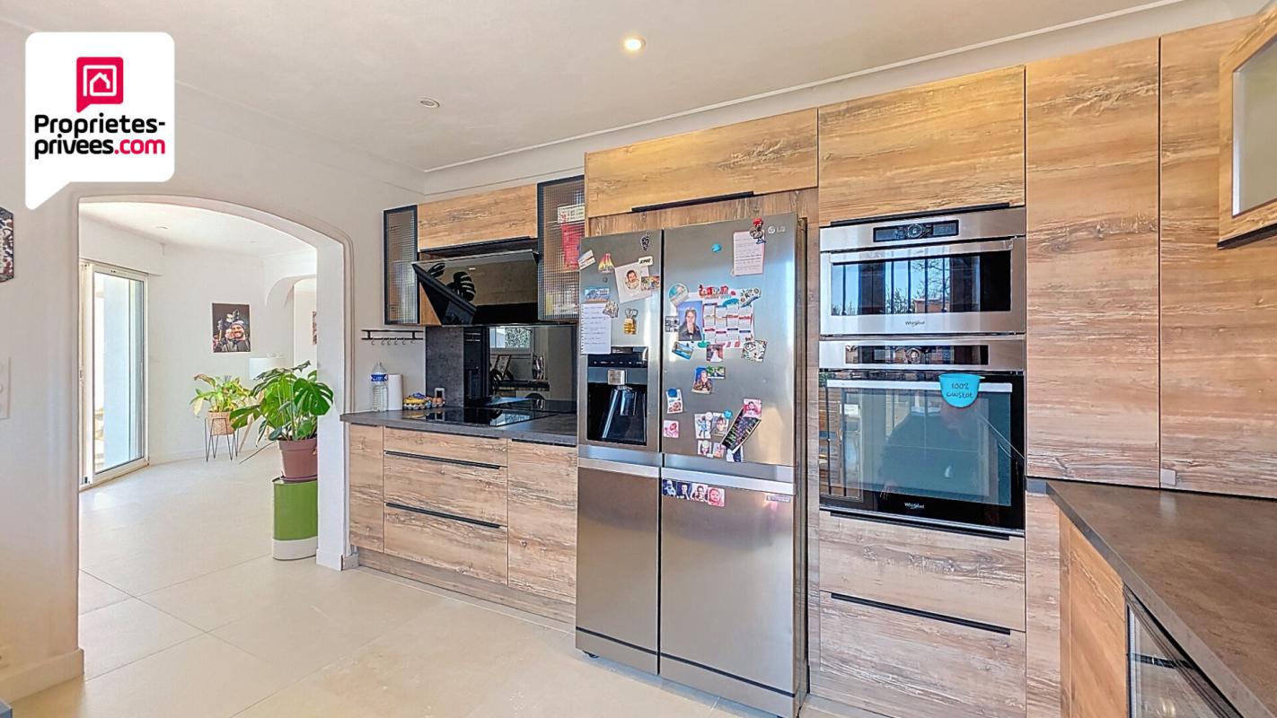 Dès l'entrée, vous serez séduit par un magnifique espace de vie composé d'un salon et d'une salle à manger baignés de lumière grâce à de larges baies vitrées. Cet espace chaleureux est agrémenté d'un poêle à bois et s'ouvre sur une grande terrasse exposée plein sud, avec vue sur la piscine et un bel olivier.