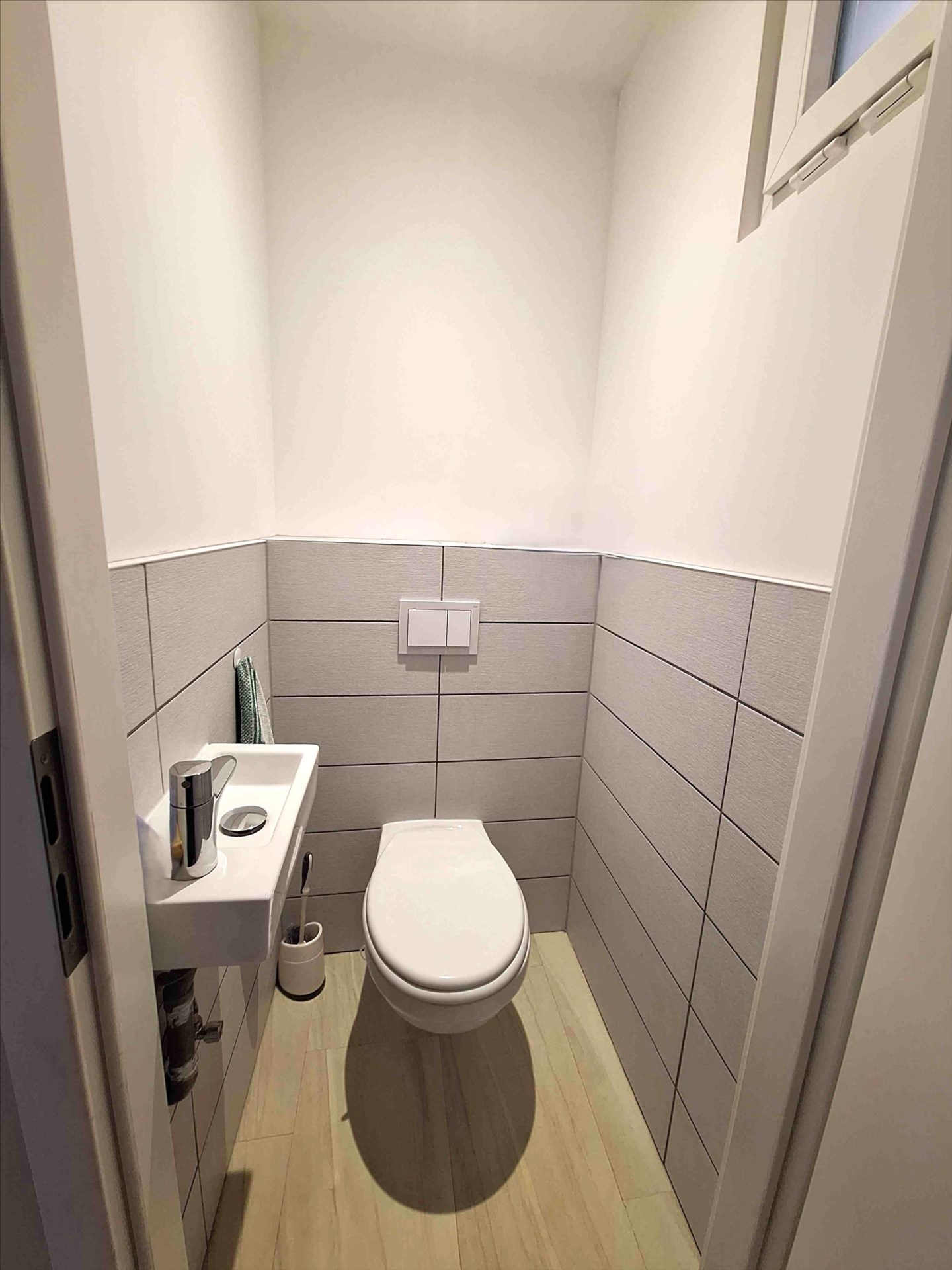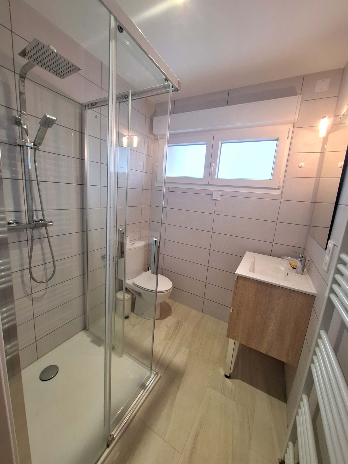 Au 1er niveau : une entrée, un wc indépendant avec lave-mains, une jolie cuisine équipée neuve ouverte sur un séjour lumineux avec accès à un balcon/terrasse ;