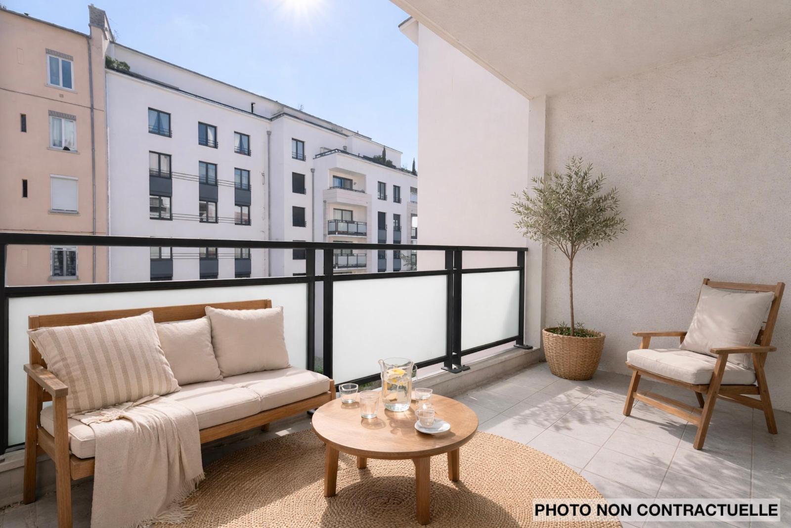 Une grande pièce de vie de 29,85 m² avec cuisine américaine qui s'ouvre sur un balcon exposé plein sud de 6,40 m², donnant sur un espace végétalisé au calme. La cuisine, au mobilier intégré, restera en place.