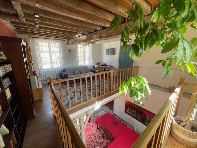 Au 1ère étage : palier desservant 2 chambres dont une avec salle d'eau et wc, dressing, salle de bains / wc, mezzanine / bibliothèque.
