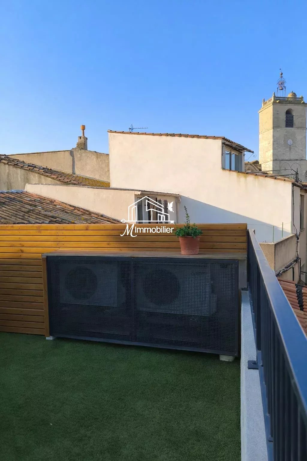 Ainsi qu'une magnifique terrasse de 23 m², rare en centre-ville, offrant une vue dégagée sur les toits de la ville et l’église, idéale pour profiter des beaux jours.