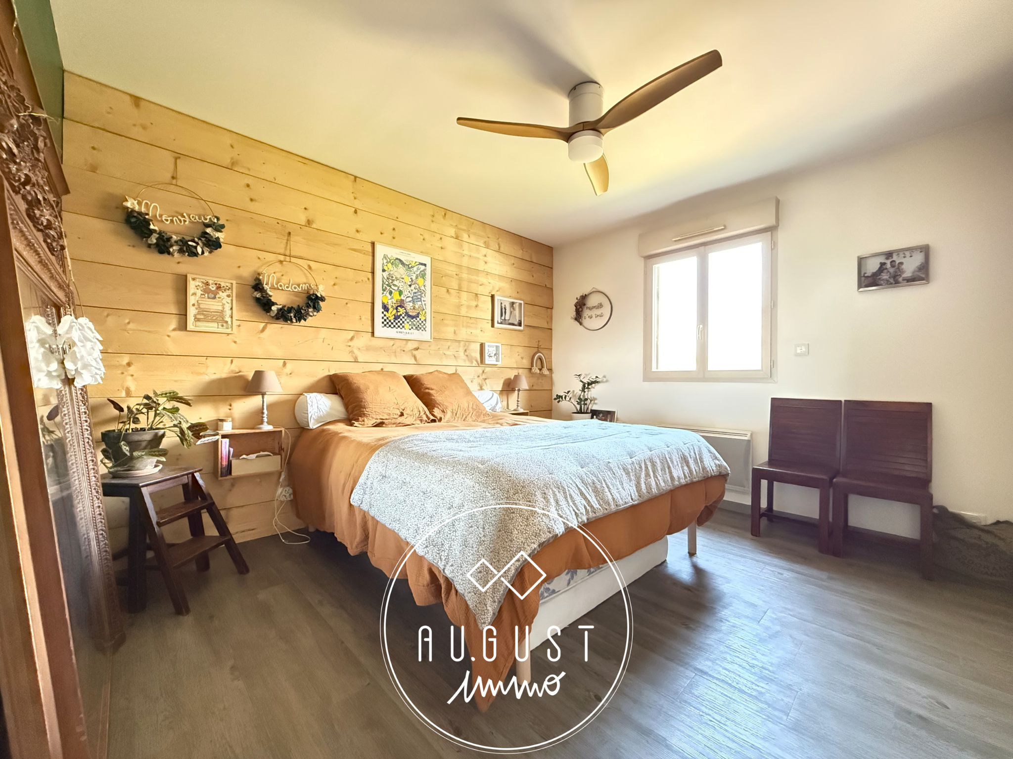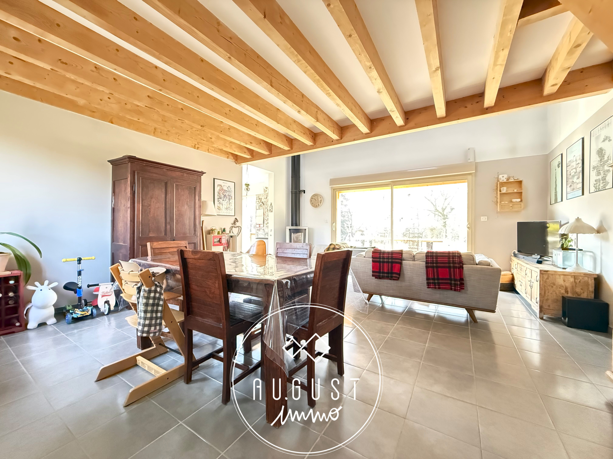 De plain-pied, la maison se compose d'une belle pièce de vie lumineuse avec accès direct à la terrasse, en partie couverte, idéale pour profiter des extérieurs en toute saison. Vous trouverez également une cuisine aménagée et équipée ainsi qu'un cellier attenant.