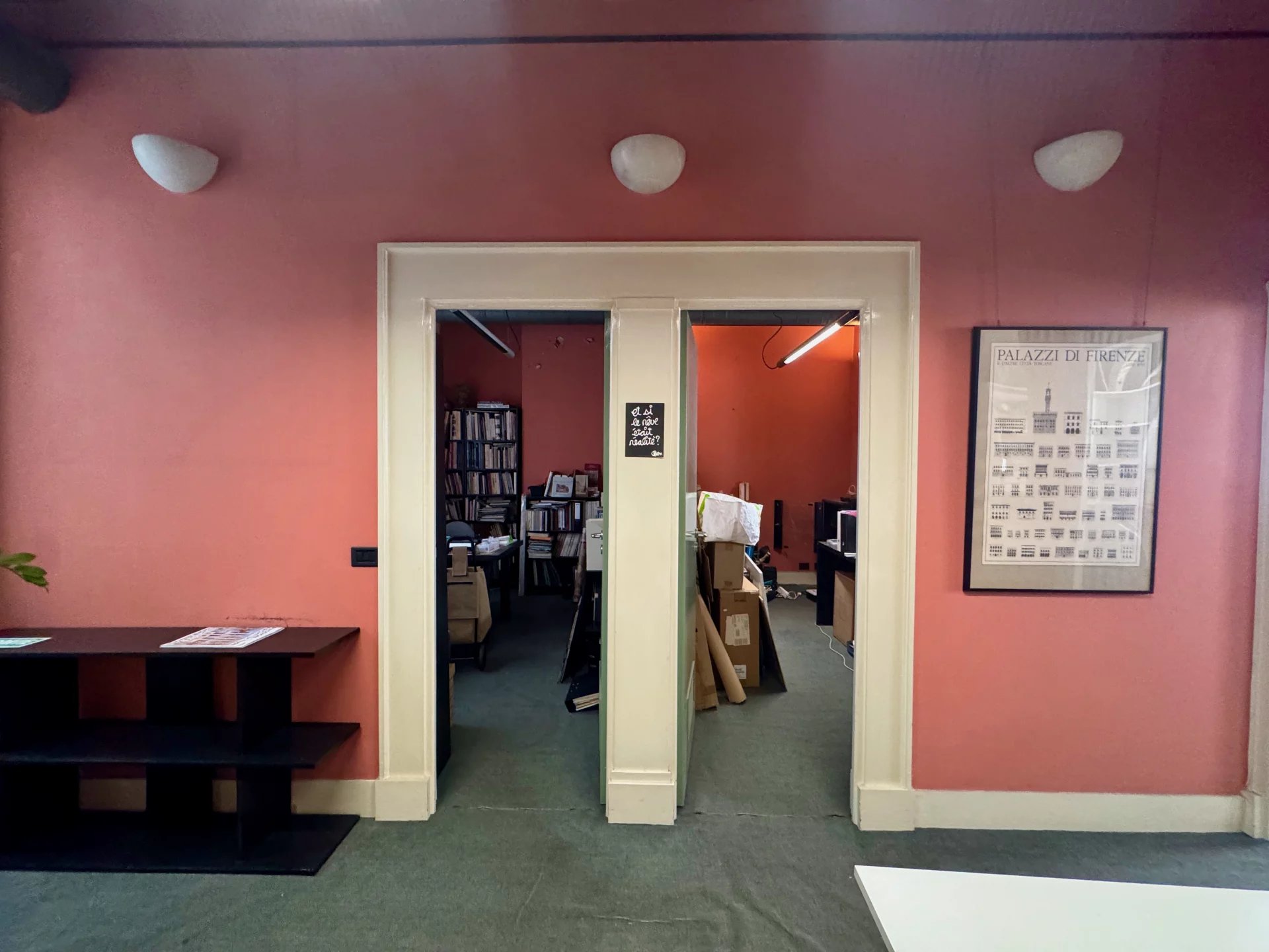 L’appartement se compose aujourd’hui d’un grand open space de 29 m² pouvant devenir un séjour, d’une salle à manger de 18 m², de plusieurs pièces pouvant être aménagées en chambres ou bureaux, d’une kitchenette de 3,15 m² ainsi que d’une salle de bain de 3 m²
