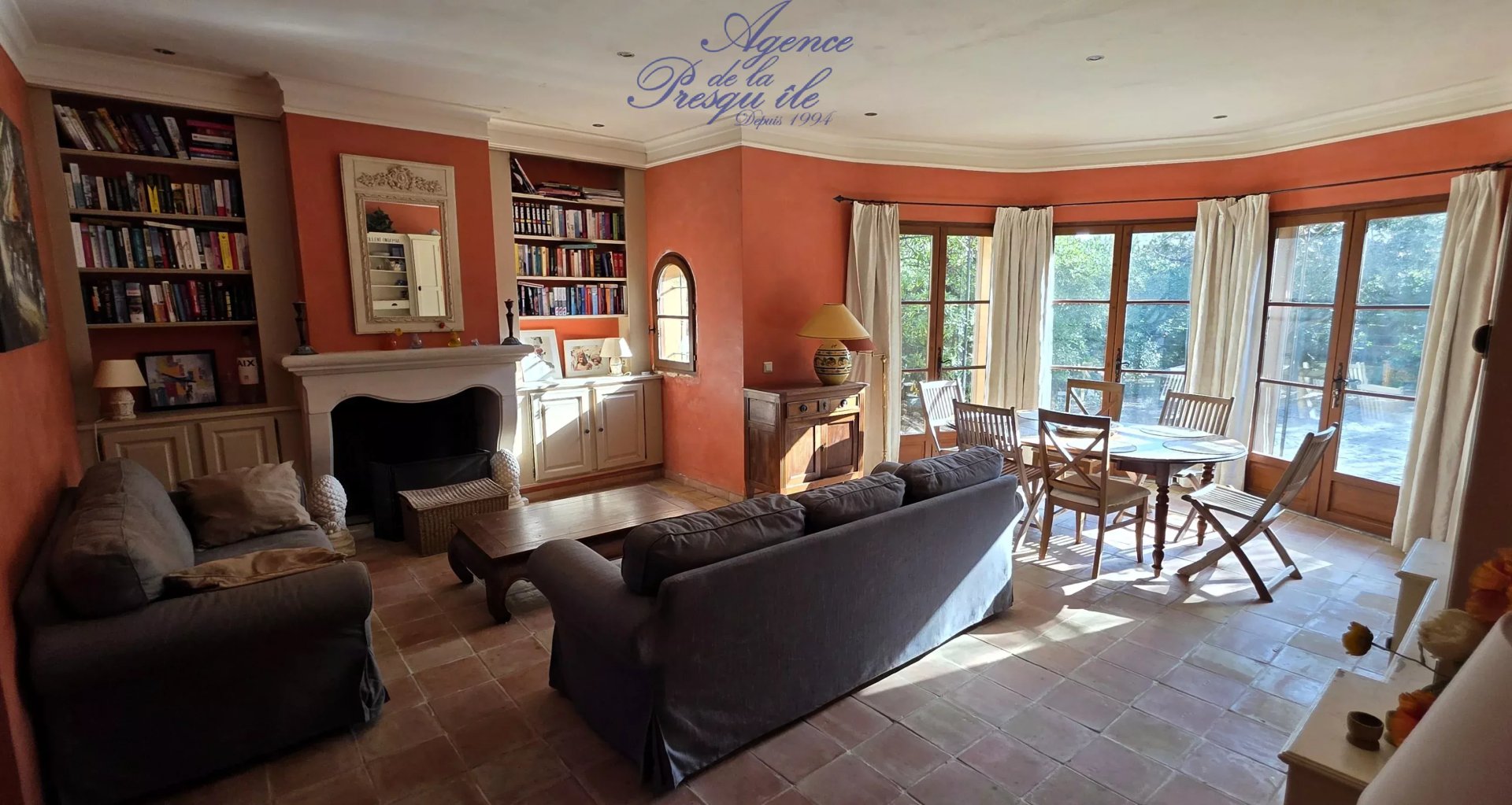 L’espace salle à manger s’ouvre sur l'exterieur et la terrasse.