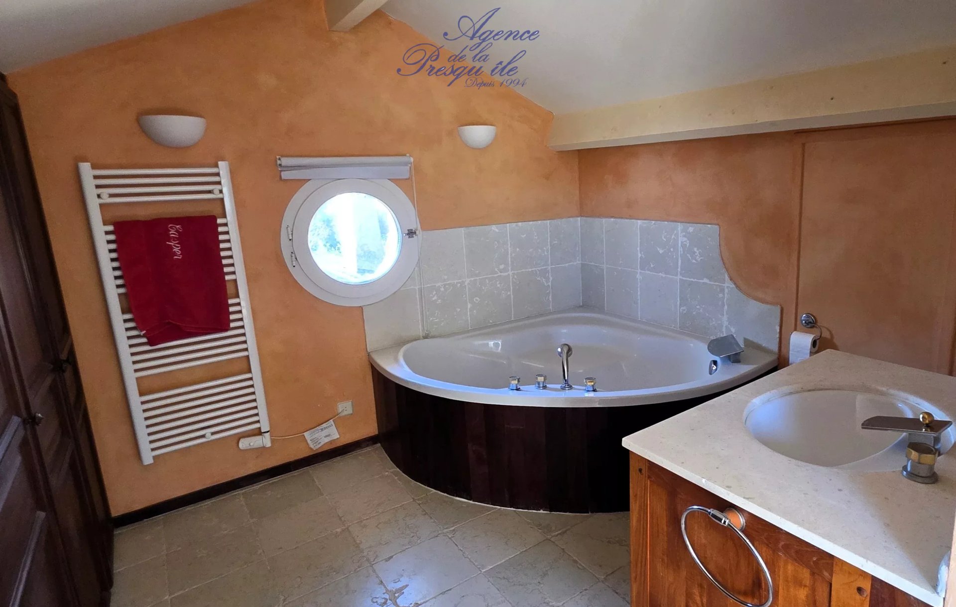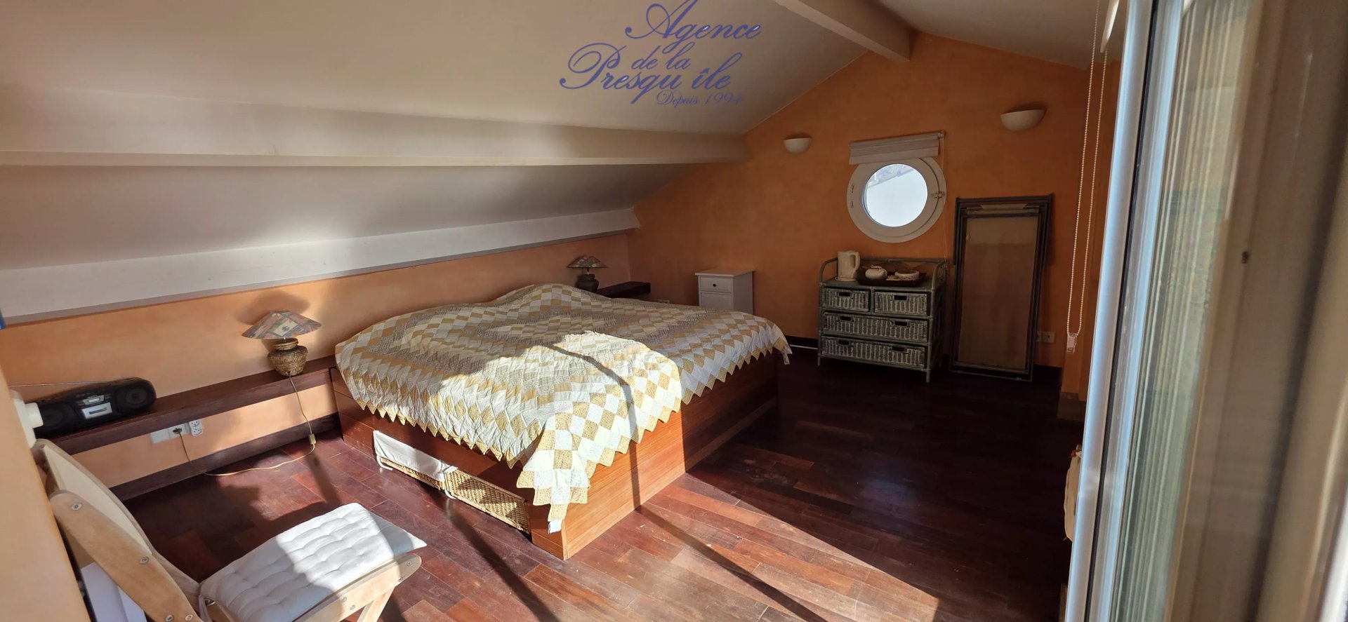 Au dernier Etage, une superbe suite parentale avec une grande salle de bains, WC et un solarium offrant une tres belle vue mer.