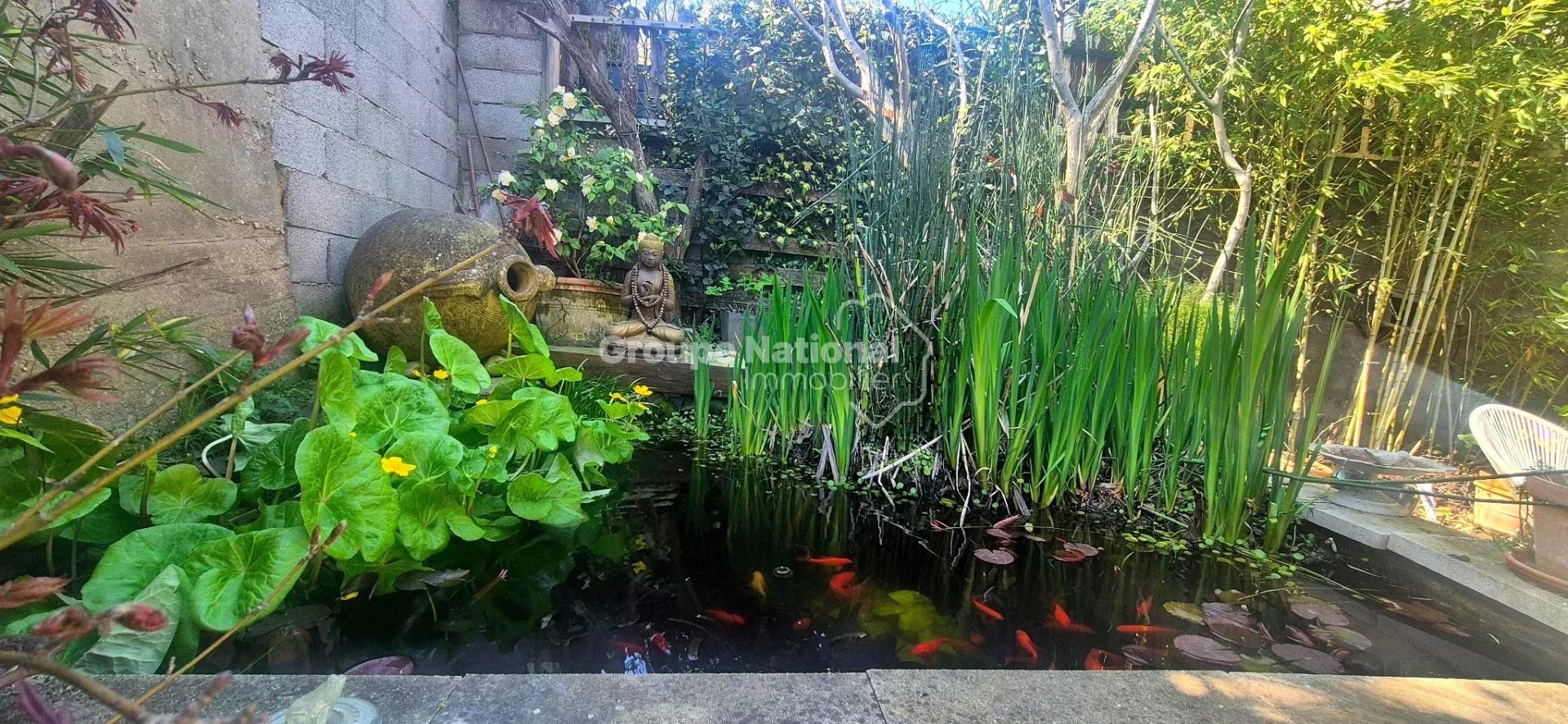À l’extérieur, le jardin paysager est un véritable havre de paix. Terrasse bois, coin repas et végétation généreuse composent un espace intimiste où l’on aime se retrouver, en plein cœur de ville.