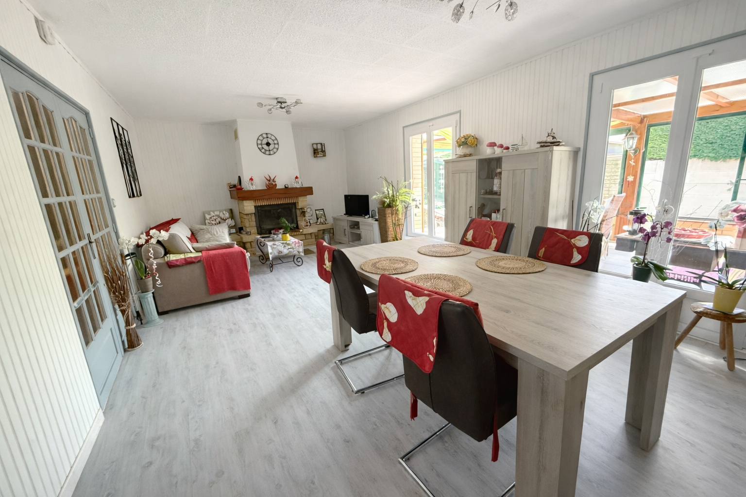 Sur la commune de WABEN, à vendre en exclusivité Agence la Demeure, jolie maison de plain-pied PMR en briques, bel espace séjour avec cheminée insert, grande véranda chauffée, cuisine équipée séparée, deux/trois chambres, salle de bains avec douche à l'italienne et toilettes PMR avec lave-mains.