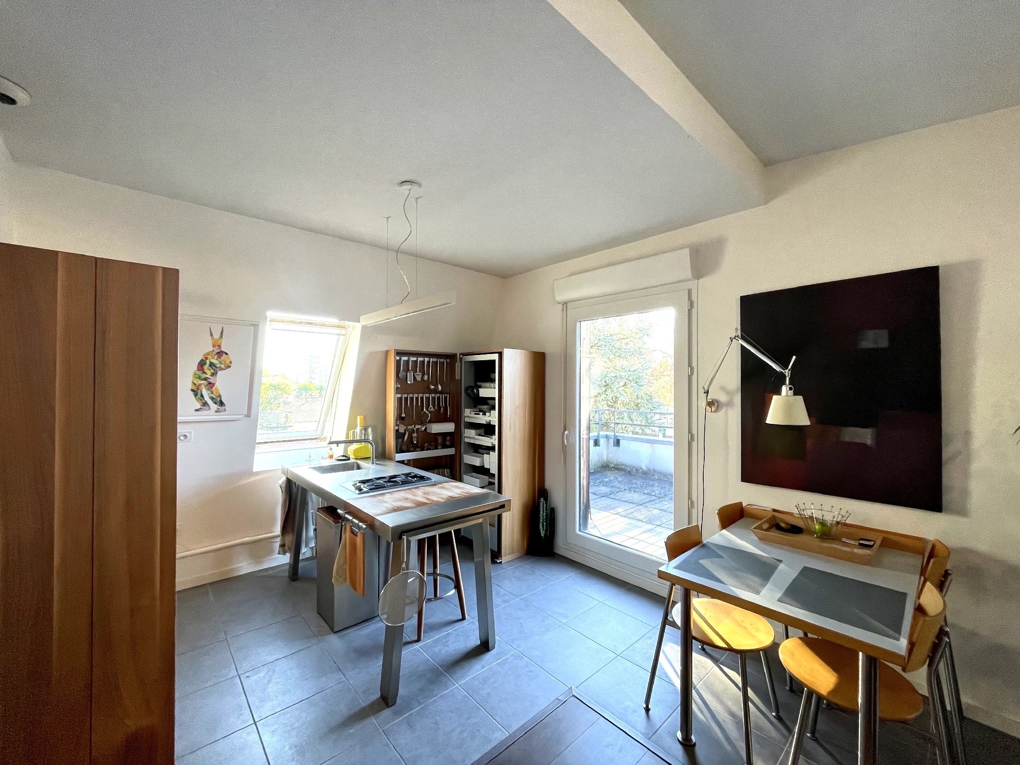Initialement conçu en 4 pièces et réaménagé avec goût en un élégant 2 pièces, il est situé au 2ème et dernier étage d'un petit immeuble avec ascenseur construit en 2015.