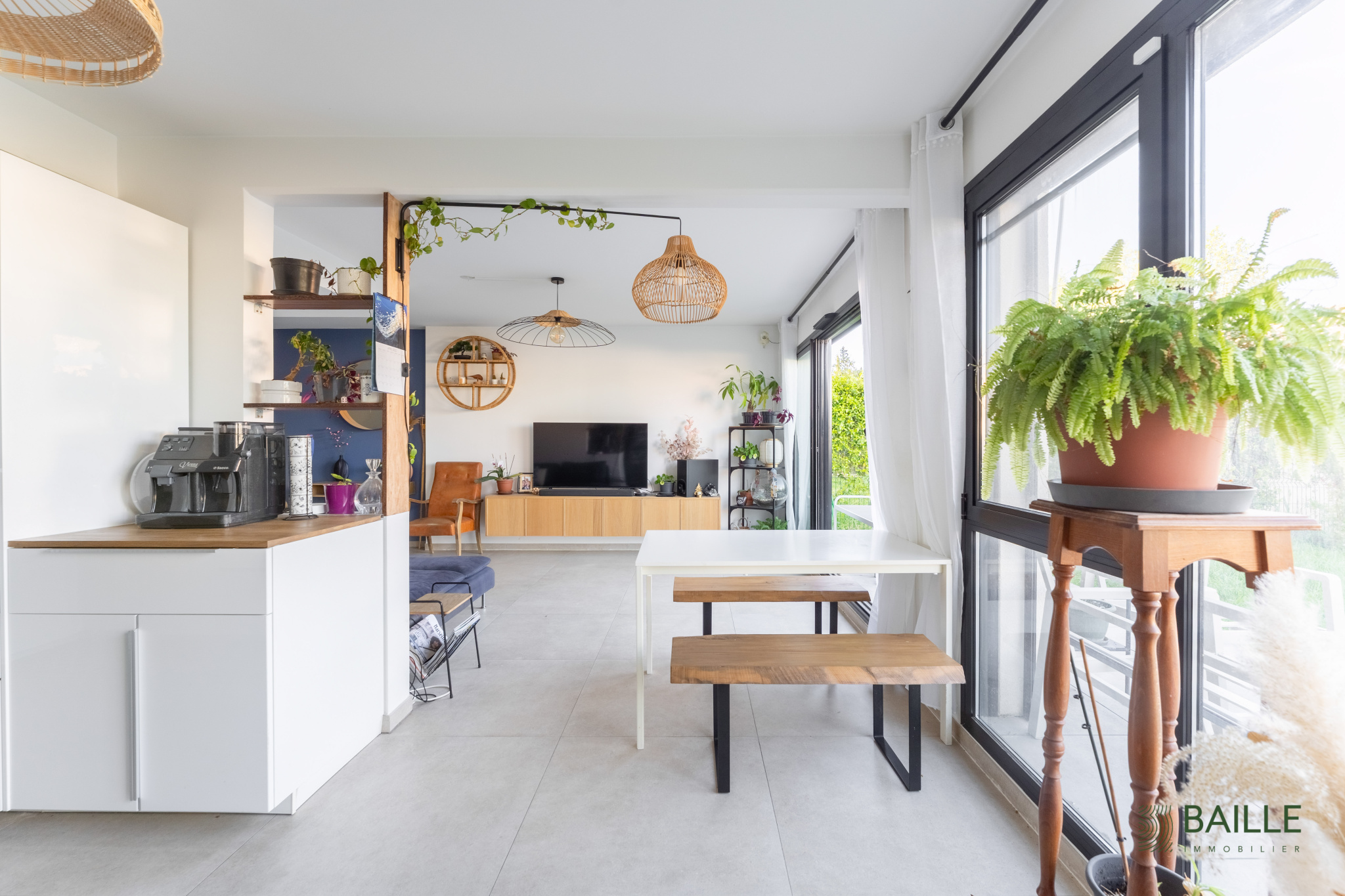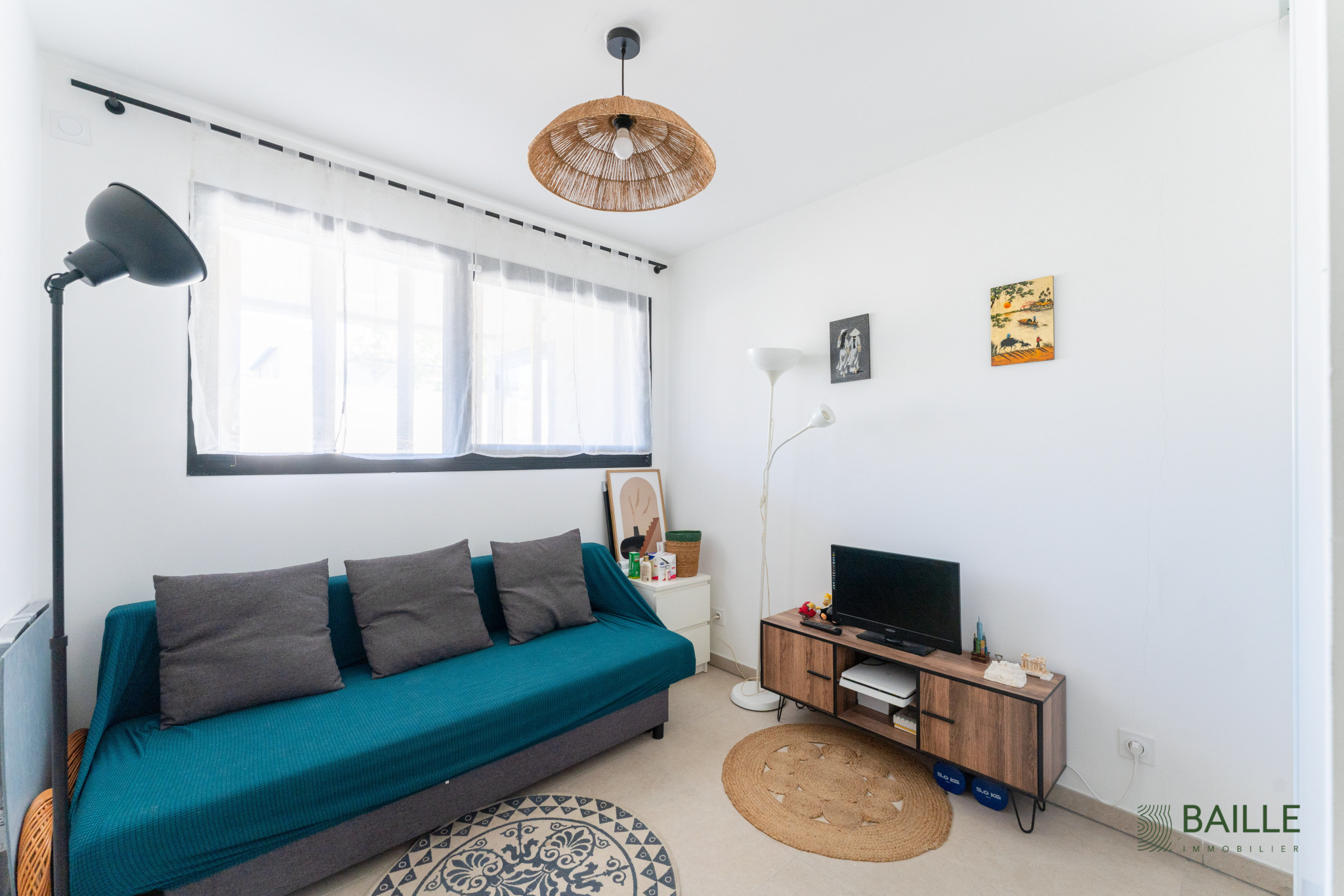 Ce bien, en parfait état, offre d'un côté un salon séjour cuisine d'environ 35m2 baignés de soleil ouvert sur le jardin sans vis à vis, une suite parentale avec salle d'eau et wc, également ouverte sur le jardin.