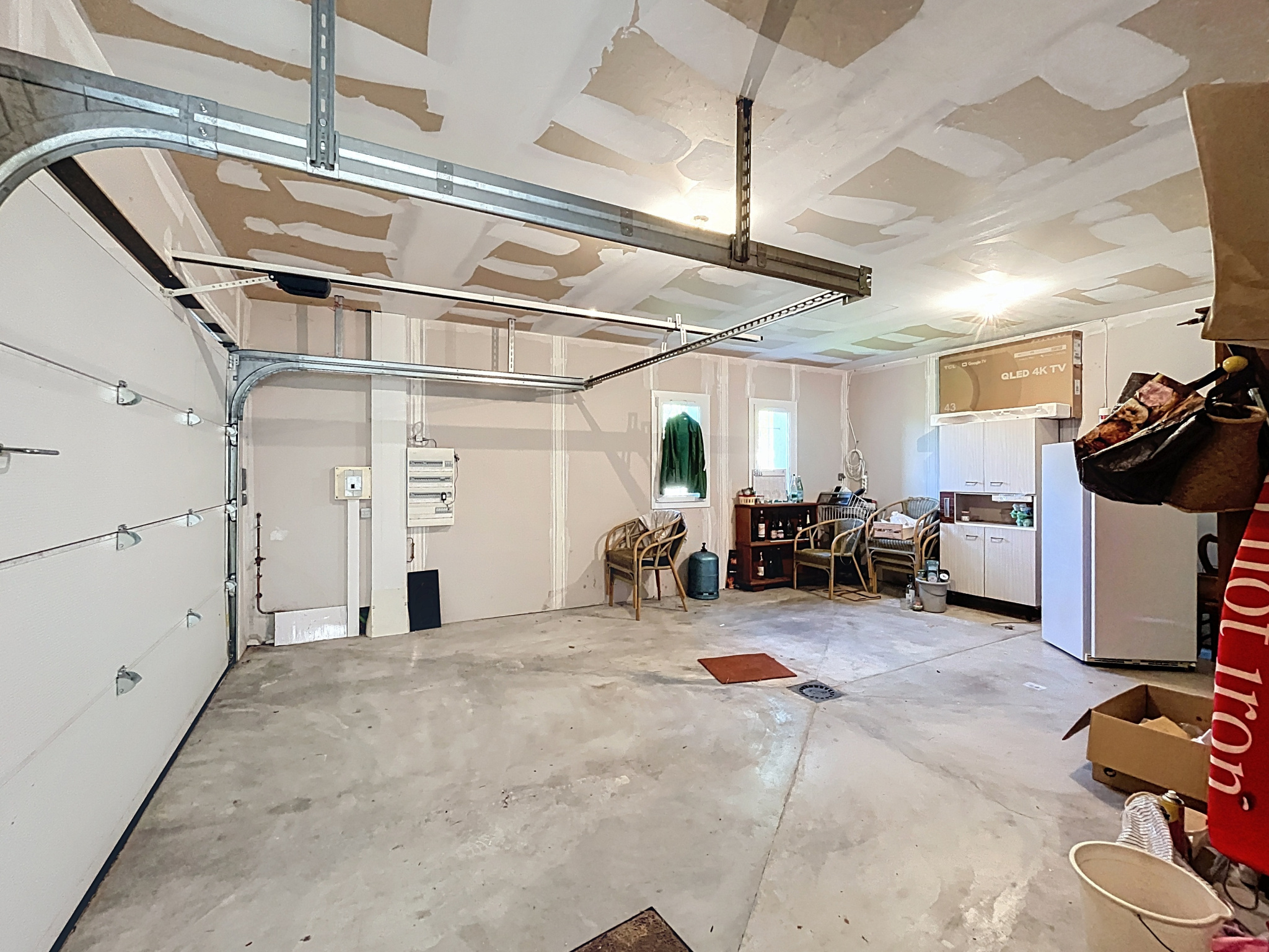 - Garage (28,60 m2) : sol béton, porte de garage sectionnelle motorisée.