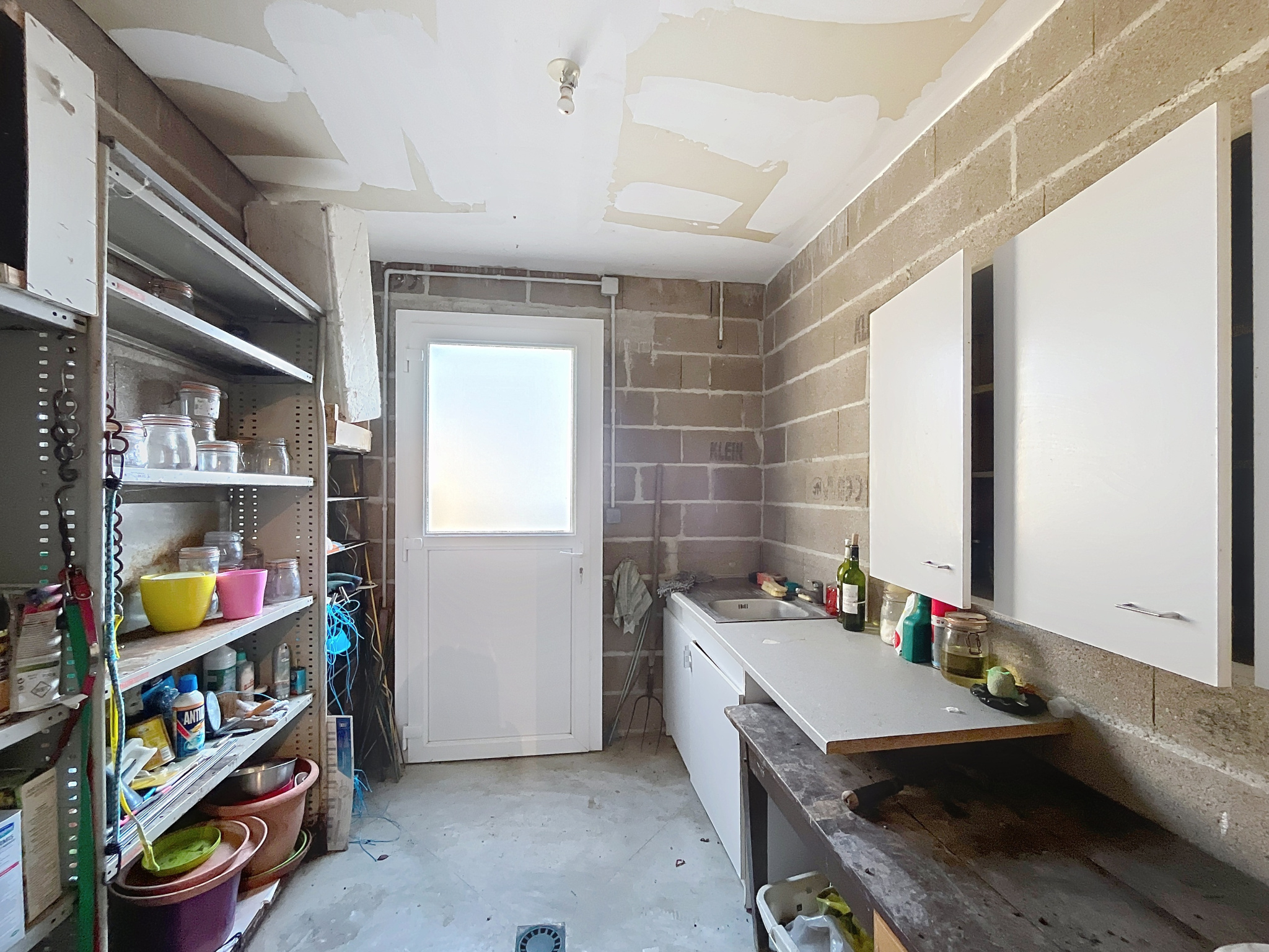 - Remise : sol béton, évier, espace de rangement, 1 porte sur terrasse arrière.