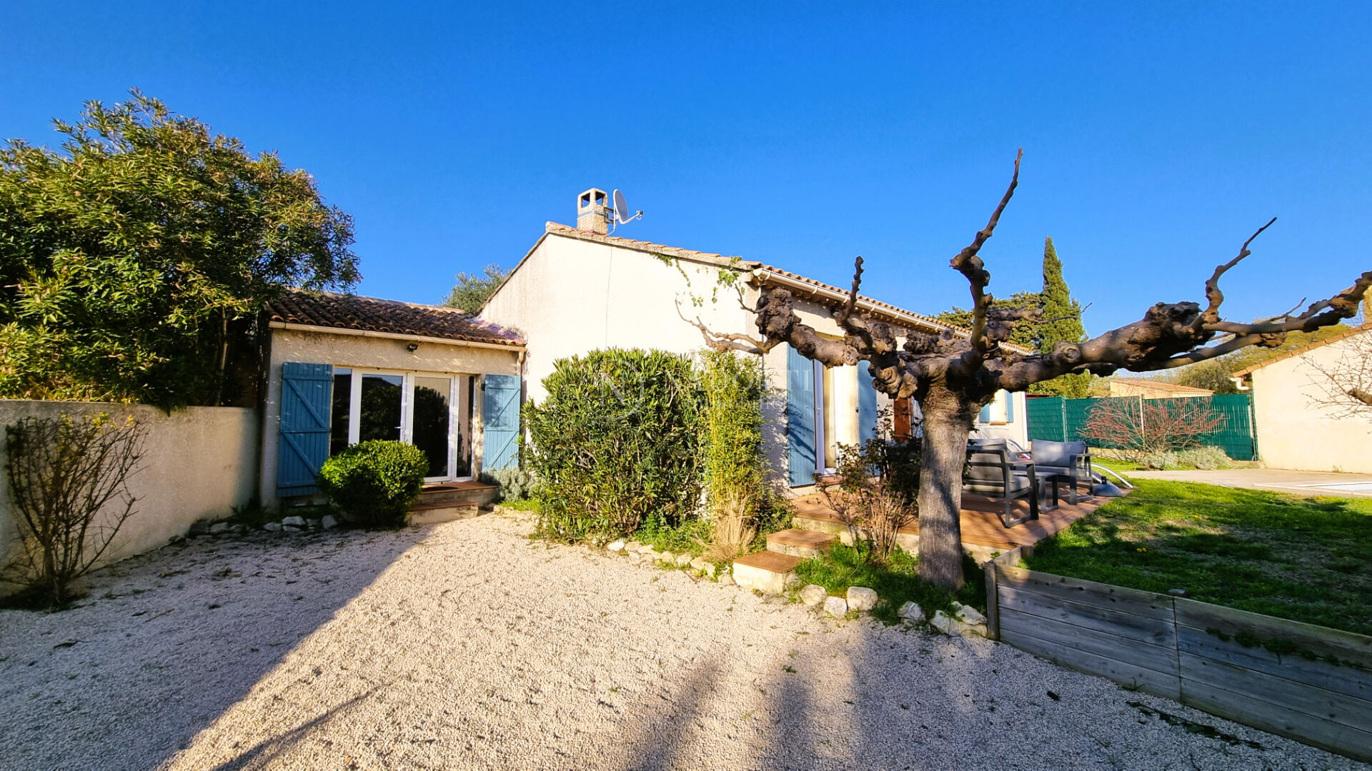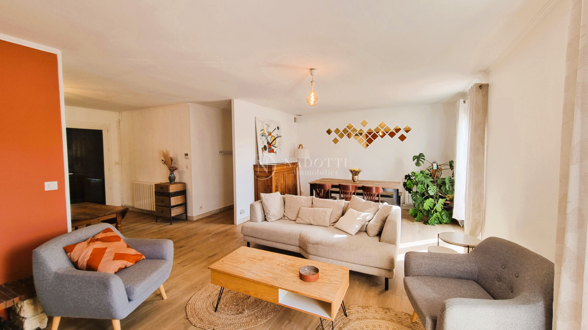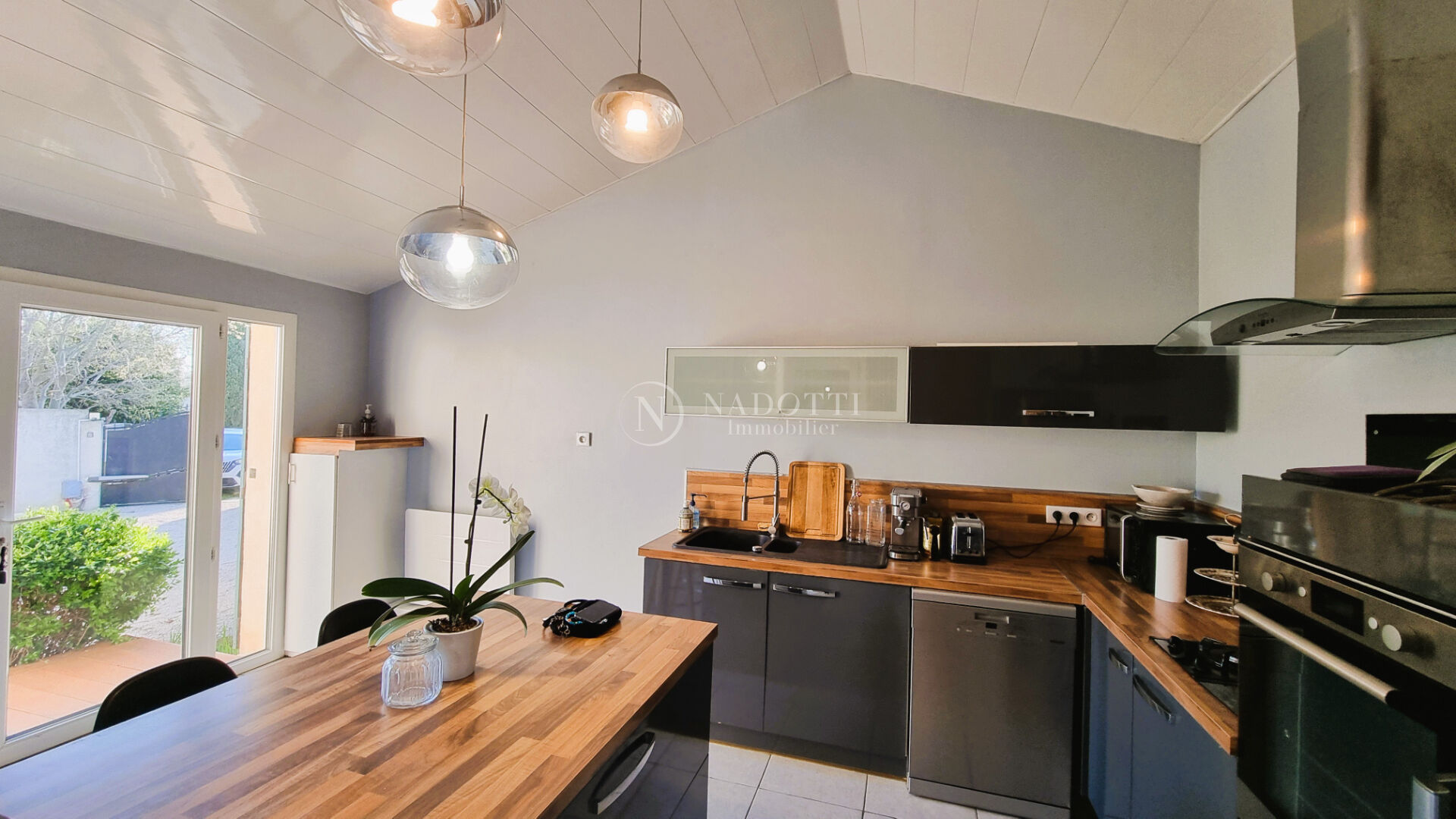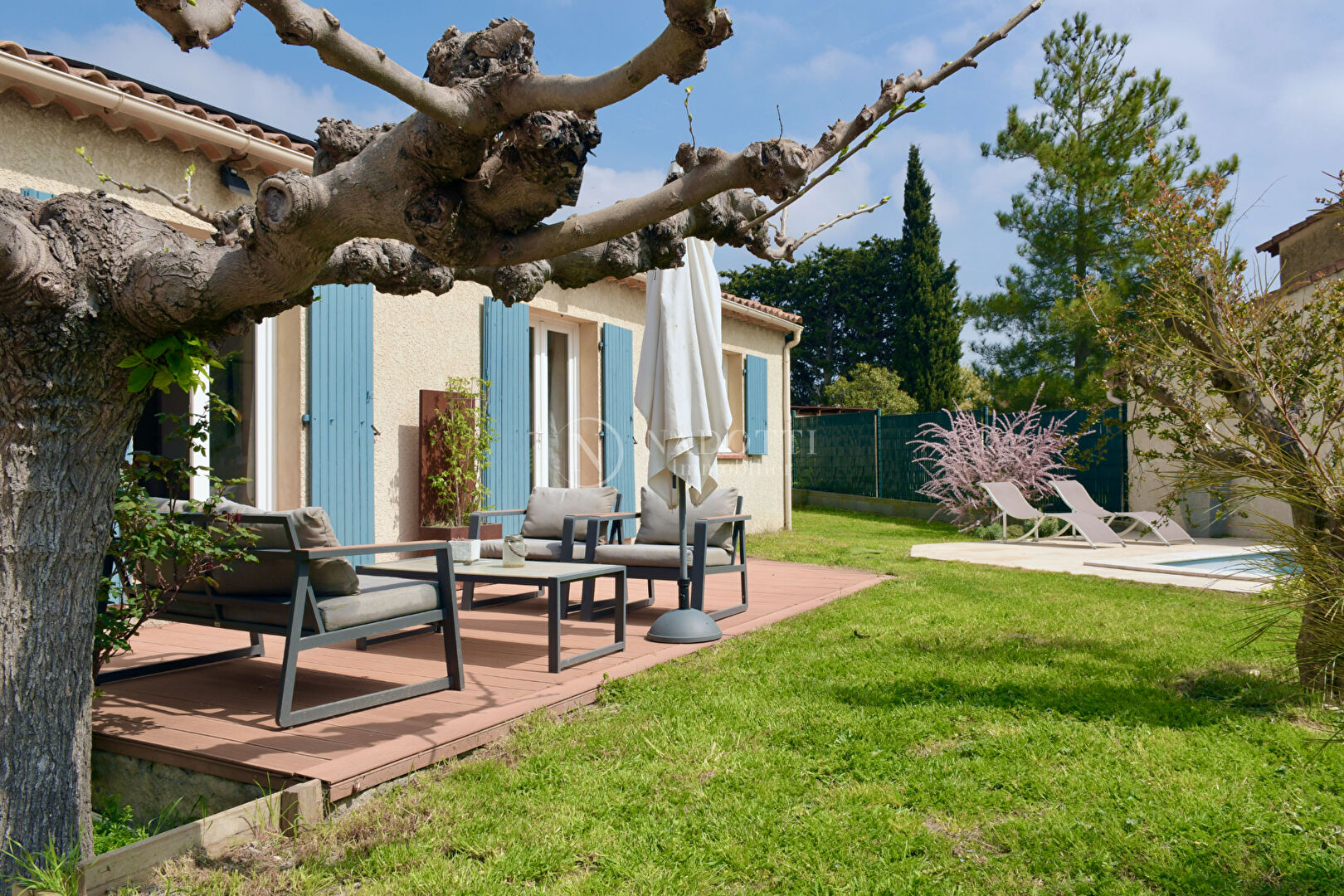 NADOTTI Immobilier vous propose : Maison de plain-pied entièrement rénovée, alliant confort moderne et cadre de vie paisible. Cette charmante maison se compose d'un espace de vie fonctionnel avec un séjour/salon ouvert sur terrasse exposition sud, une cuisine entièrement équipée et aménagée avec cellier attenant , trois chambres, une salle d'eau, des toilettes séparés et un espace bureau . Vous serez séduit par son joli jardin clos et arboré, véritable havre de paix, agrémenté d'une piscine à l'abri des regards pour profiter pleinement des beaux jours en toute intimité.
