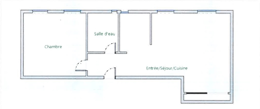 Agencement des pièces idéales sans perte de place. Dès l'entrée profitez de la pièce de vie de plus de 27 m2 (cuisine comprise) avec 3 fenêtres. Chambre et salle d'eau avec WC.