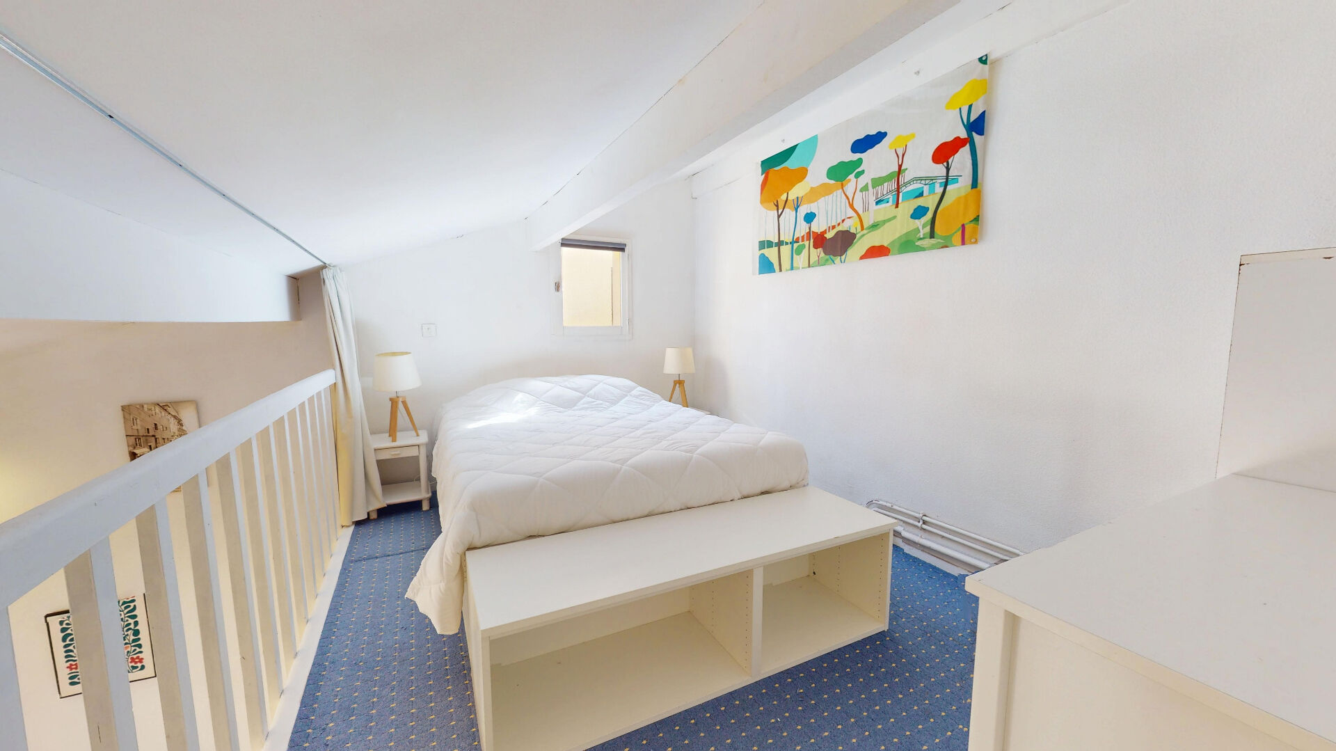 Espace optimisé : Pièce de vie lumineuse avec cuisine équipée, coin nuit (lits superposés) et une mezzanine confortable.