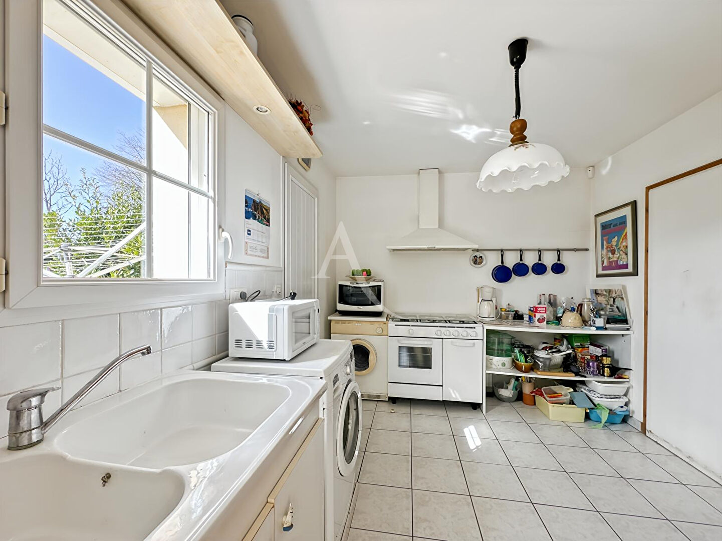 Côté intérieur, le bien offre une entrée avec placard, un WC indépendant avec lave-mains, une salle d'eau, ainsi que deux chambres, dont une spacieuse de plus de 14 m² avec accès direct à la terrasse par baie vitrée. La cuisine, aménagée et équipée, se révèle très fonctionnelle et s'ouvre sur un cellier de plus de 10 m², apportant un véritable confort au quotidien.