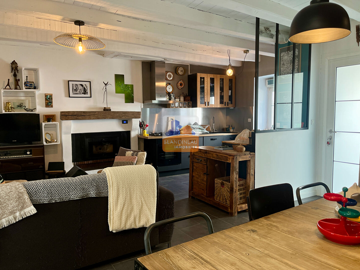 D'une surface de 80 m² habitables, elle se compose d'une entrée, d'une belle pièce de vie de 30 m² avec un espace salon/séjour et une cuisine ouverte aménagée et équipée.
