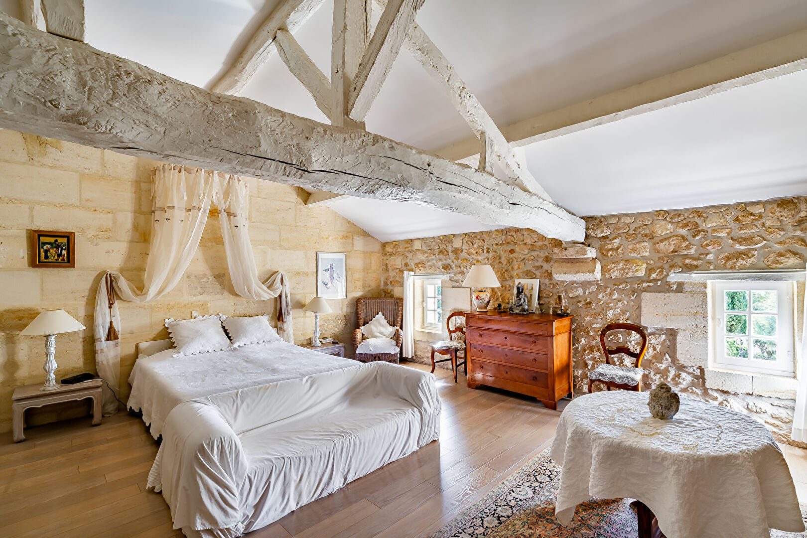 La maison se compose d'une très belle salle à manger avec cheminée, d'une cuisine équipée, d'un vaste salon avec mezzanine, de trois chambres, dont une exceptionnelle de 40 m², d'une salle de bains avec douche, d'une buanderie et d'une cave. CALME ASSURE .