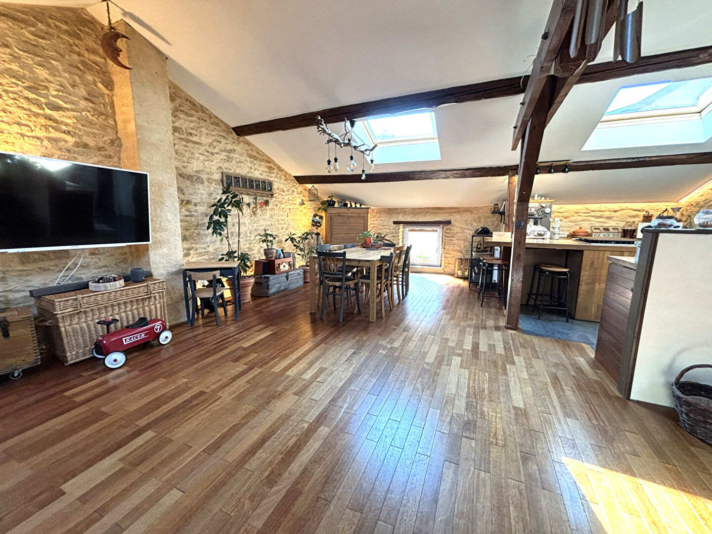 Cette maison séduit par ses beaux volumes et sa configuration idéale. Vous serez immédiatement charmé par un vaste espace de vie de 65 m², lumineux et convivial, comprenant un séjour ouvert sur une cuisine équipée moderne. Un bureau ainsi qu'un cellier complètent cet espace fonctionnel et agréable à vivre.