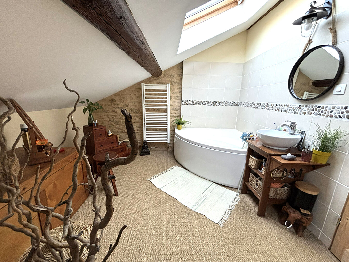En rez-de-chaussée, un véritable atout : un appartement indépendant de type 2 pièces avec cuisine équipée, séjour, chambre, salle de bains et terrasse privative. Idéal pour accueillir famille, amis ou générer un revenu locatif.