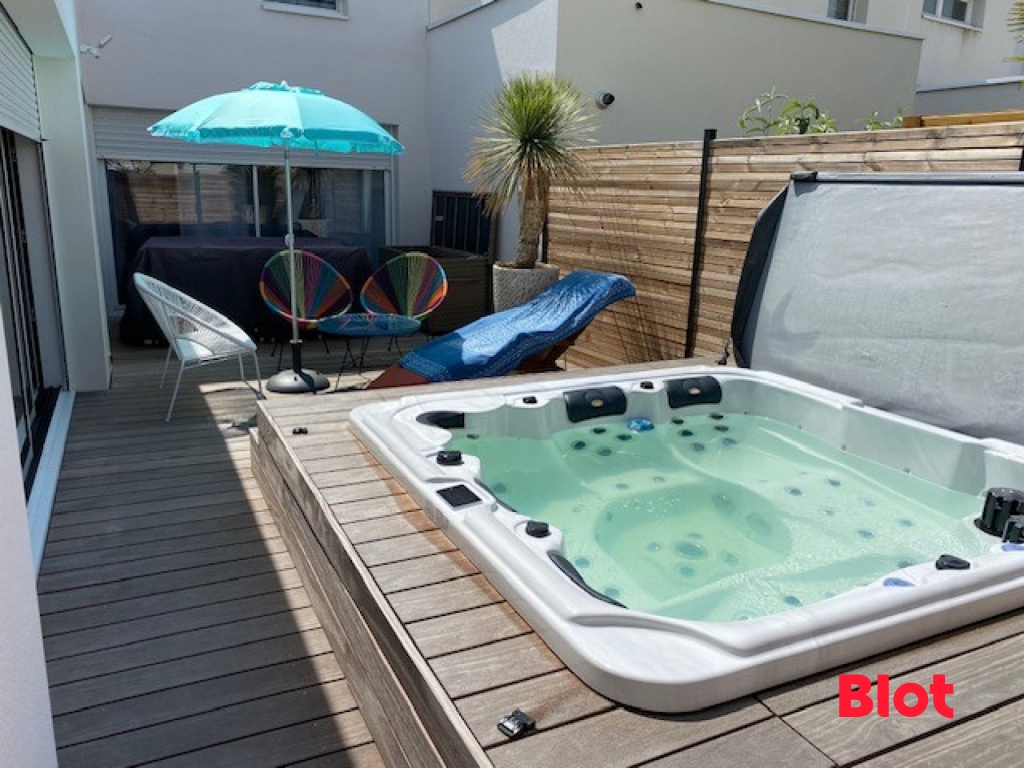 La maison propose également une belle pièce de vie de 33 m², comprenant un séjour et une cuisine aménagée et équipée, avec un accès direct à une terrasse accueillante, agrémentée d'un jacuzzi pour des instants de détente privilégiés.