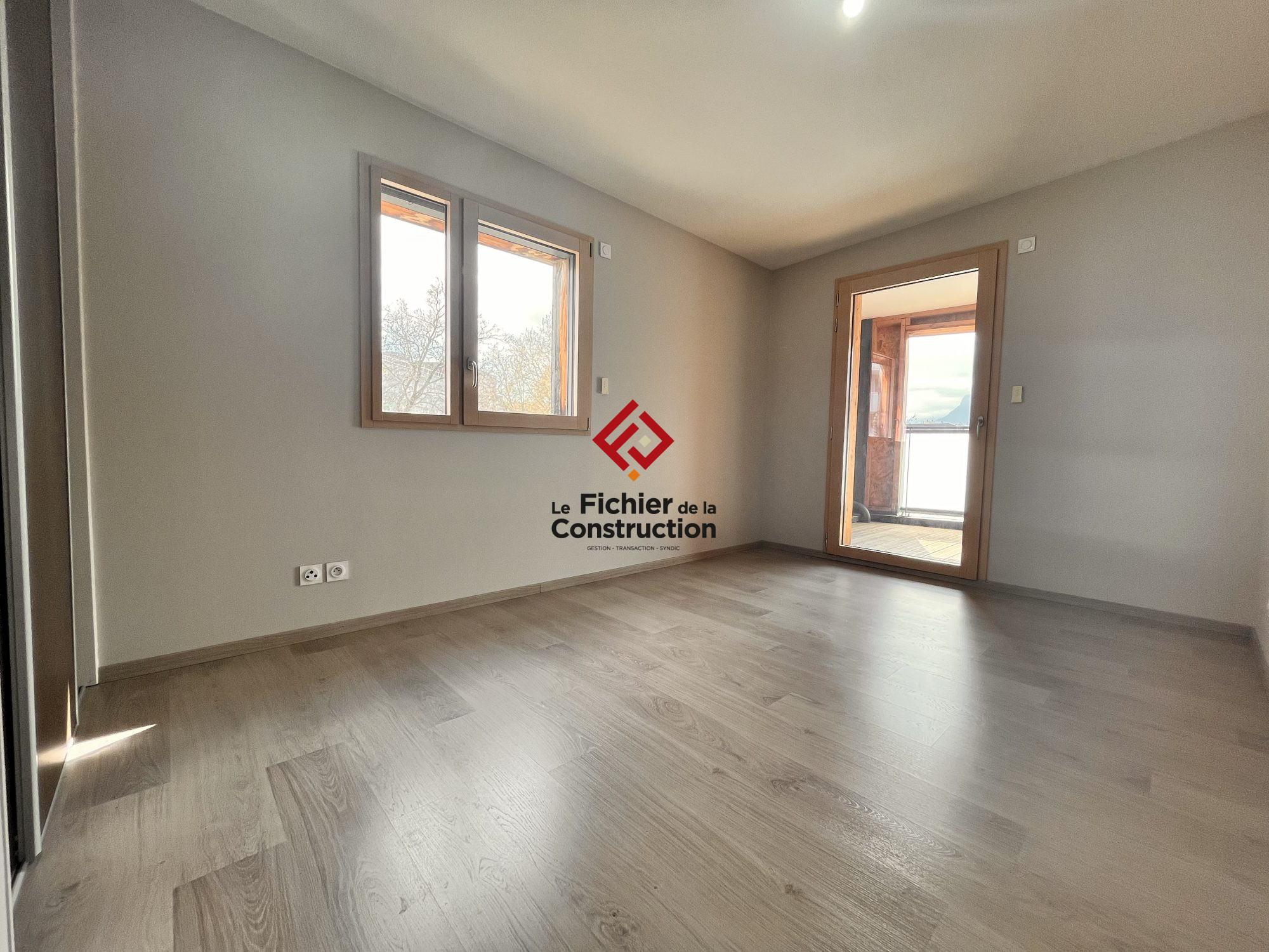 Il se compose d'une entrée/dégagement desservant la pièce de vie avec cuisine toute équipée ouverte et un accès à la terrasse abritée de 10 m² sans vis-à-vis et avec une vue dégagée sur le Vercors. On trouve ensuite un espace nuit composé de 2 belles chambres, d'une salle de bains avec fenêtre et d'un wc séparé.