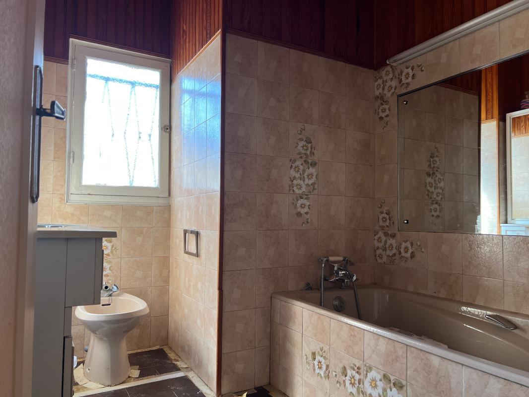 Maison traditionnelle sur sous-sol avec entrée, placards, garage double, chaufferie, buanderie, atelier. Au rez-de-chaussée surélevé entrée, placards, séjour, salon, terrasse, cuisine équipée, chambre, salle de bains avec WC. Au premier étage petit palier desservant deux chambres, salle d'eau avec WC, dressing.