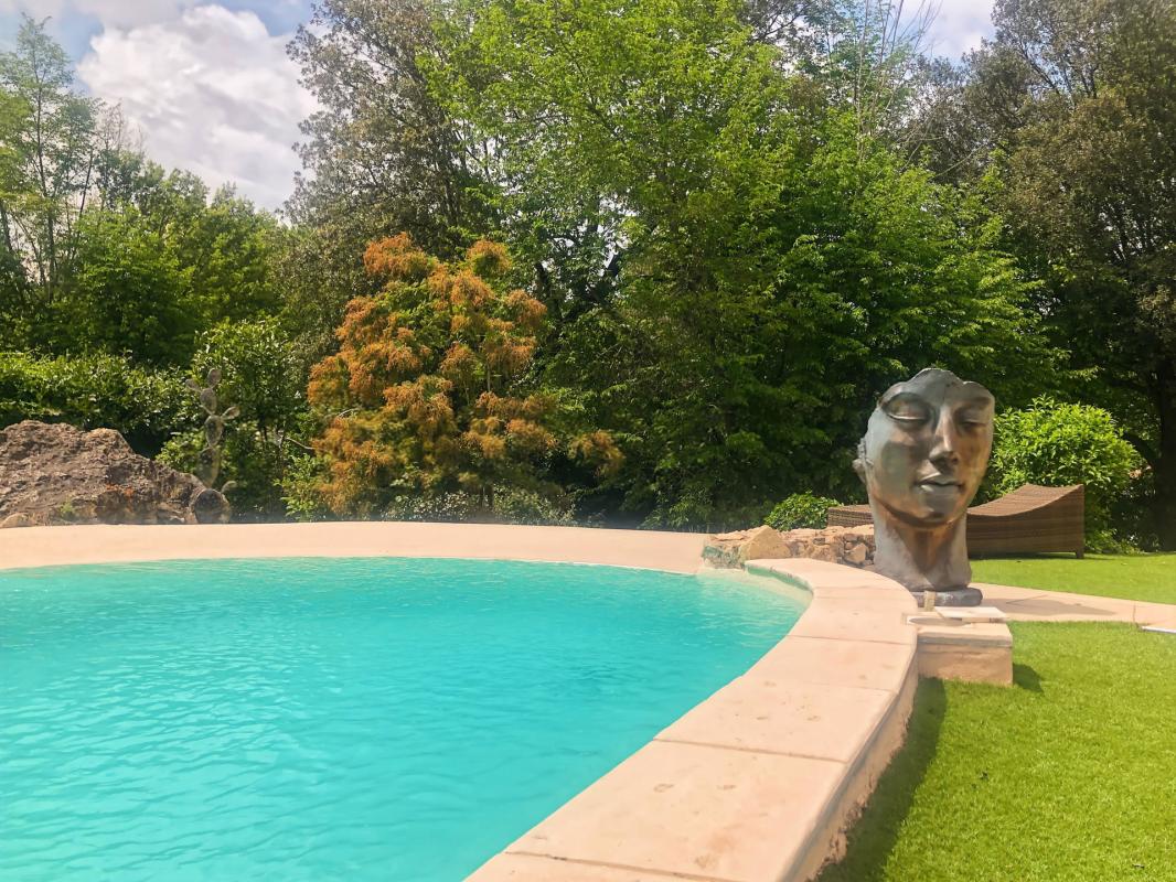 Le jardin, entretenu et facile à vivre, accueille une piscine au sel de 11 x 4,5 mètres avec plage immergée.