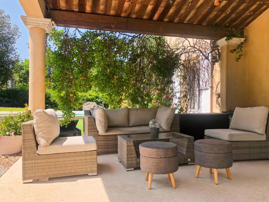 La propriété se compose d'une villa principale de 220 m² habitables ainsi que d'un appartement indépendant 3 pièces de 45 m², le tout sur un terrain plat, clos et arboré de 2 100 m².