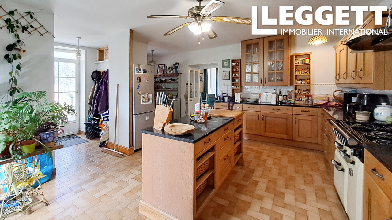 La maison allie le charme de l'ancien, avec ses murs en pierre apparente et ses planchers en bois, à des espaces de vie fonctionnels, comprenant une grande cuisine, une salle à manger et plusieurs salons. L'étage propose quatre chambres spacieuses ainsi que trois salles d'eau.