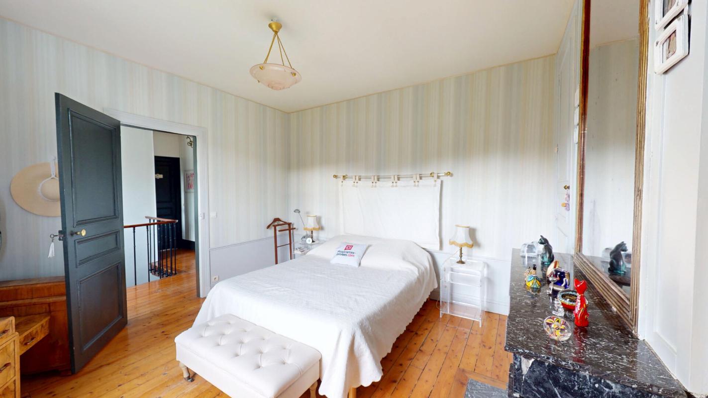 1er étage : trois grandes chambres (dont deux avec cheminée en marbre et une avec placards), salle d'eau avec WC suspendu, bidet, rangements.