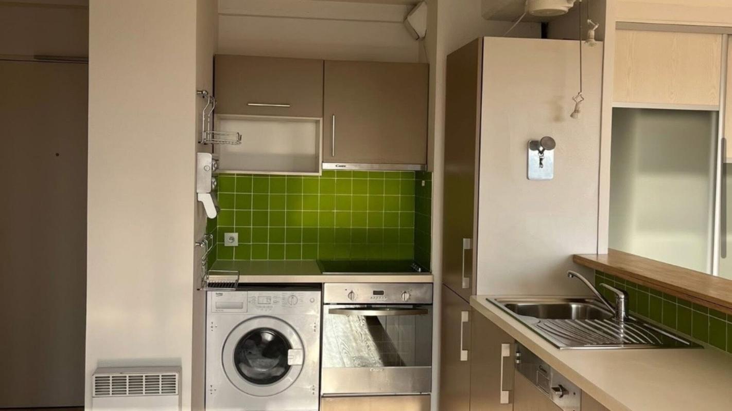 La cuisine américaine est entièrement aménagée et équipée (four, plaque vitrocéramique, hotte, lave-vaisselle, lave-linge, réfrigérateur).
