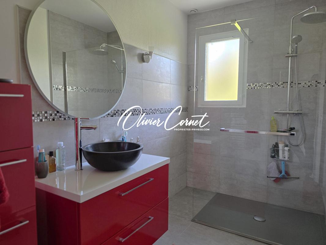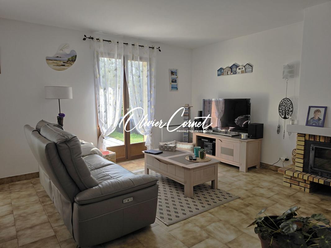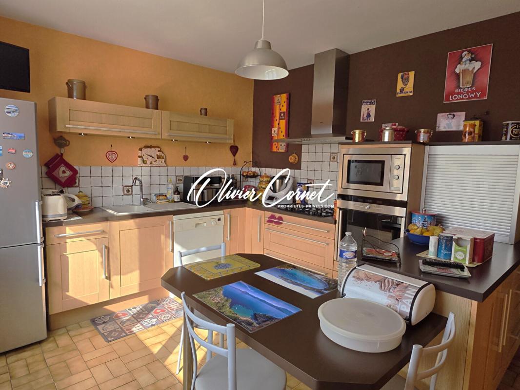 De plain-pied, ce pavillon vous offre un séjour avec cheminée insert et accès direct à une terrasse exposée sud, une vaste cuisine équipée, deux chambres, une salle de douches récente et des wc séparés. A l'étage, un grand palier lumineux dessert deux chambres supplémentaires, dont une aux dimensions généreuses et une seconde salle de douche avec wc.