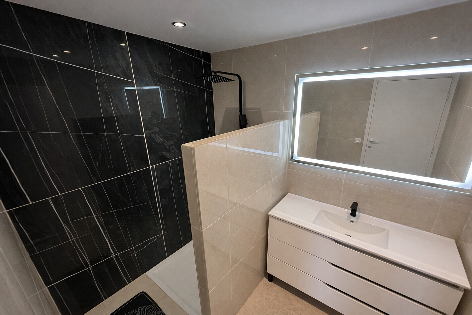 L'espace nuit comprend deux chambres avec placards, une salle de bains moderne avec douche à l'italienne, une buanderie et un WC séparé.