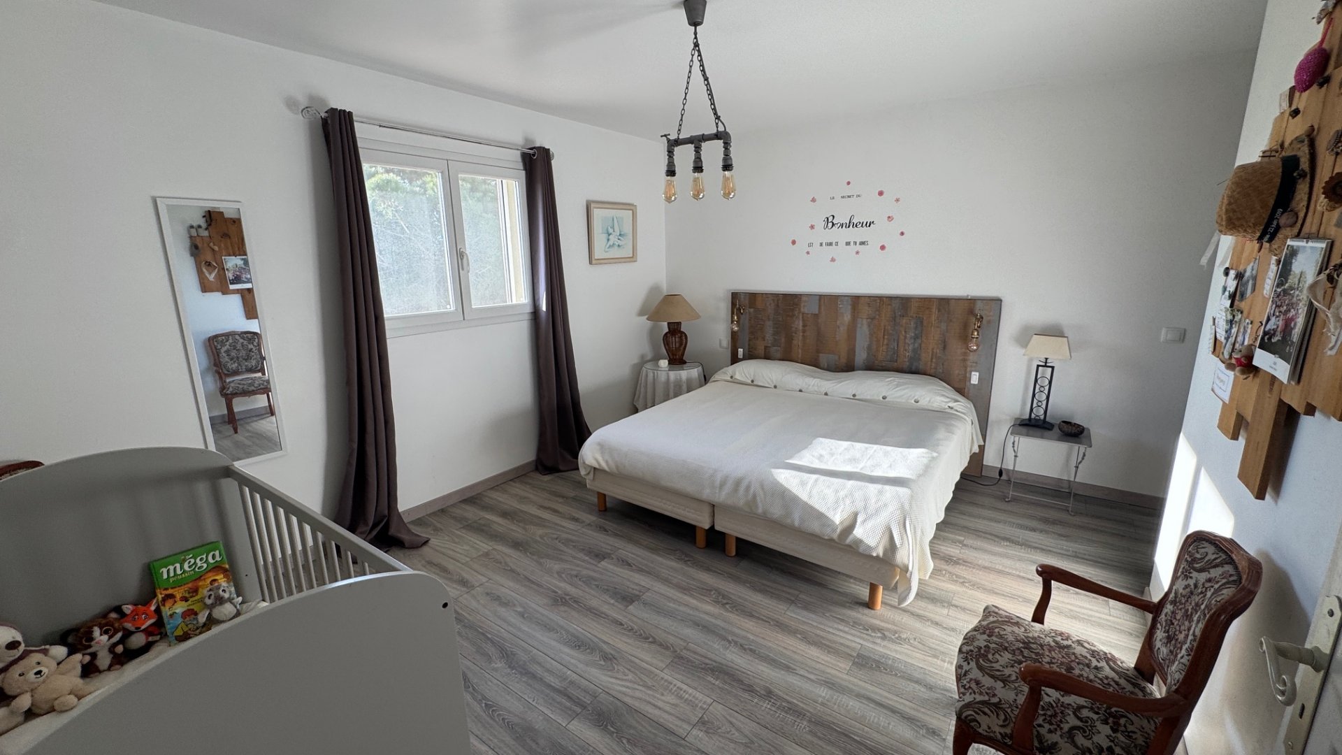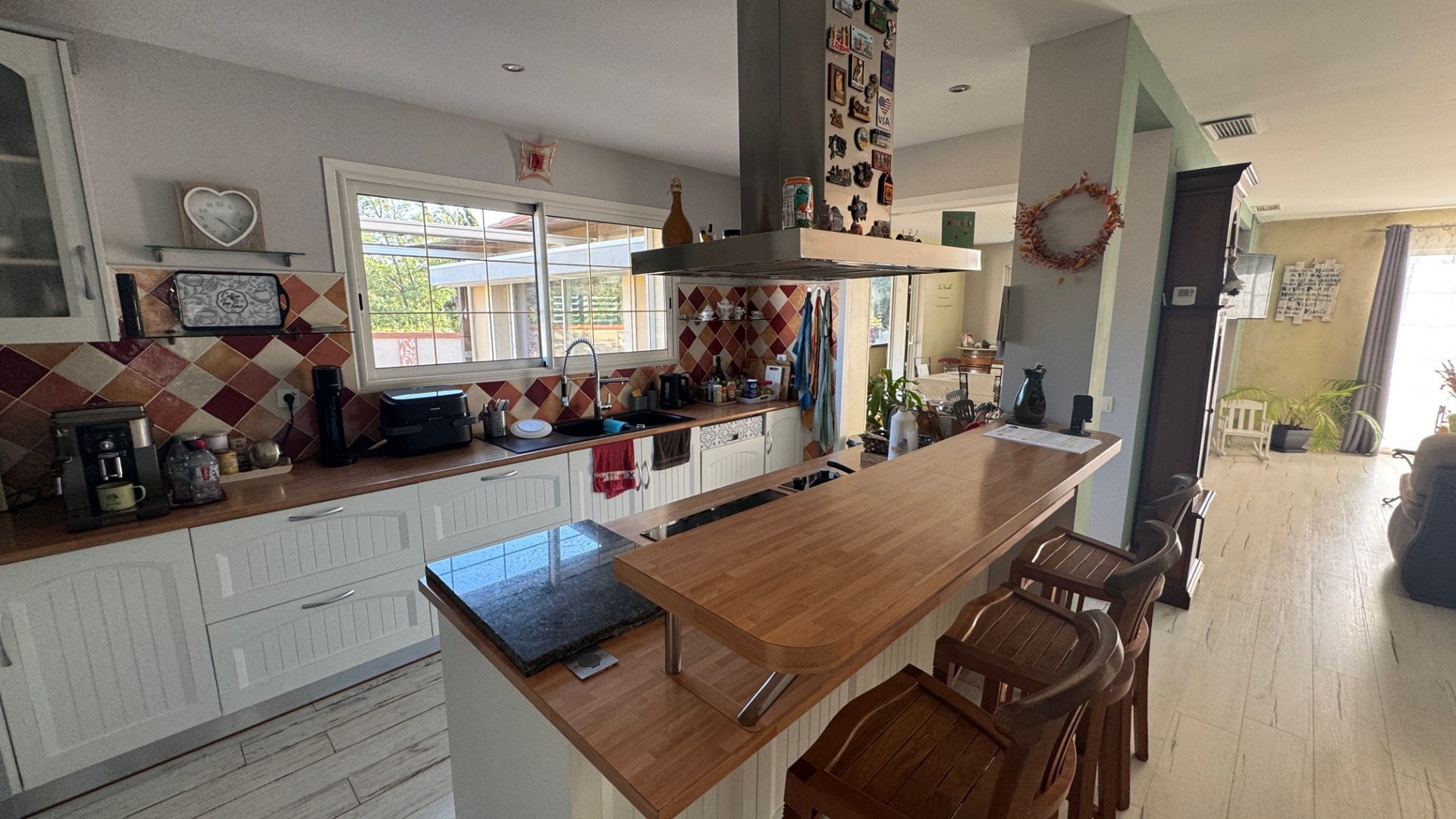 CABESTANY, à proximité du village et de la nature, villa d'architecte traditionnelle 4 faces de 167 m² H + logement indépendant de 50 m² + garage et annexe édifiée sur parcelle 4 faces sans vis à vis de 1120 m². Séjour / SAM / cuisine ouverte de plus de 60 m², 4 chambres dont 2 en rdc avec SDE, SDE suplémentaire...Véranda donnant l'espace piscine, cuisine d'étée. Terrain de pétanque. Construction traditionnelle.
