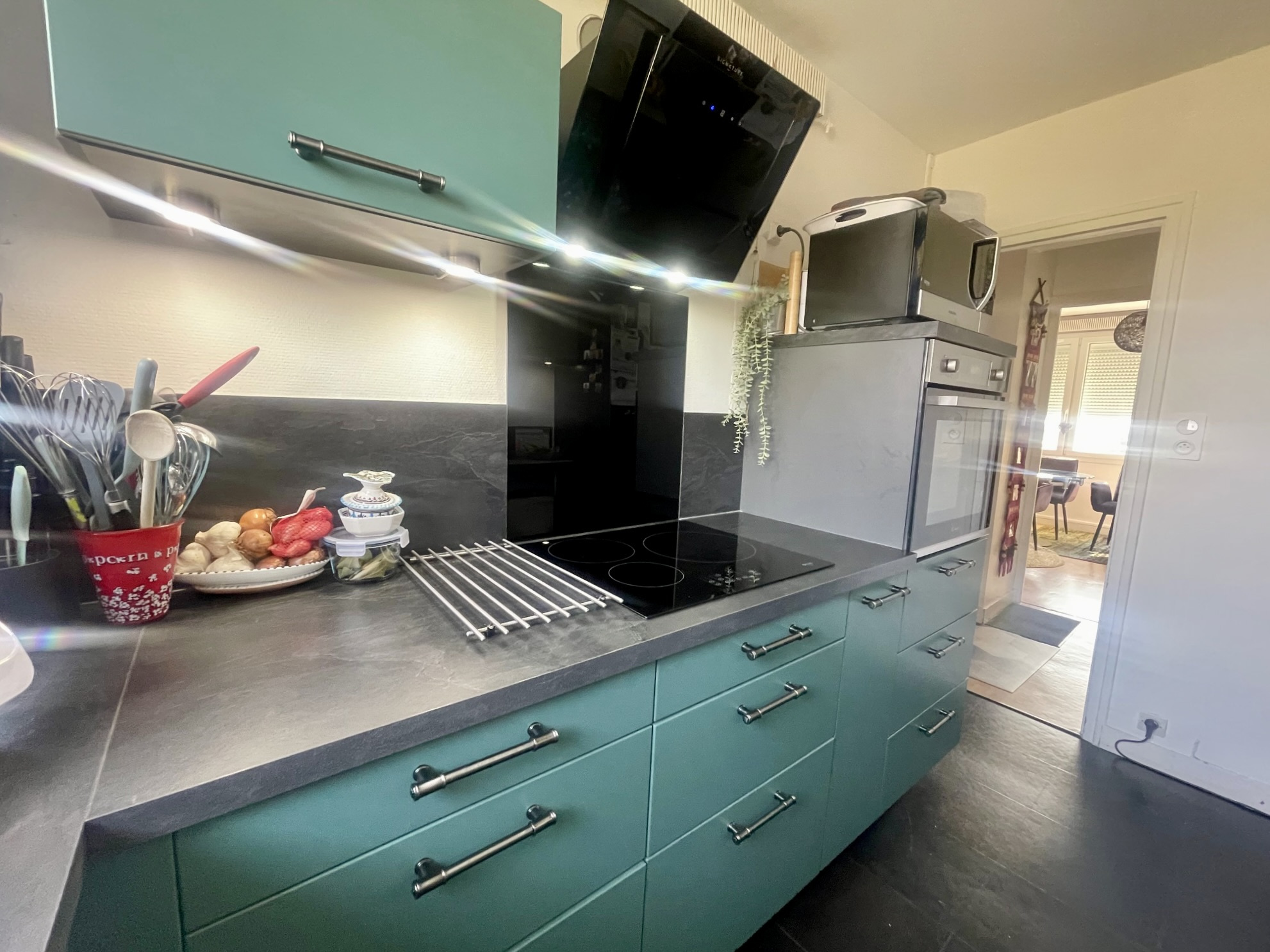 REZE RATIATE. Petite copropriété au fond de l'impasse. Le tramway à la porte très binetôt. 4ème étage exposé Sud. Entrée, séjour, cuisine aménagée équipée, dégagement avec placards, 2 chambres, salle d'eau et séchoir. La cave complète ce bien.